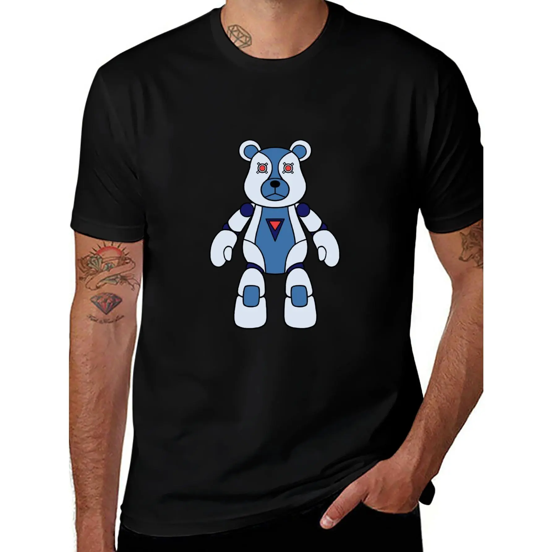 Step into the future with our Cyber Mecha Bear Graphic Tee. This design blends the charm of a classic teddy with a sleek, high-tech robotic exoskeleton. Featuring a vibrant blue and white armor plating with glowing red accents, this "Robo-Bear" is a must-have for fans of sci-fi, techwear, and modern designer toy culture. It’s bold, innovative, and built to stand out.