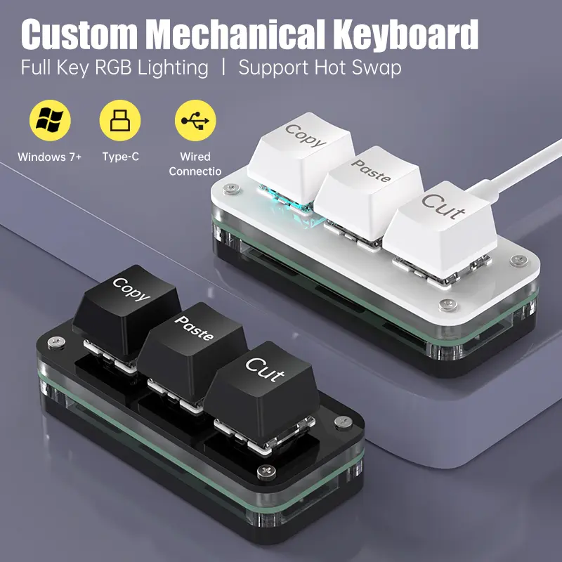 RGB 3 Keys Macro Programming Mini Keyboard for Photoshop Gaming Hotswap Programming Keypad Copy Paste Mini Button Macropad