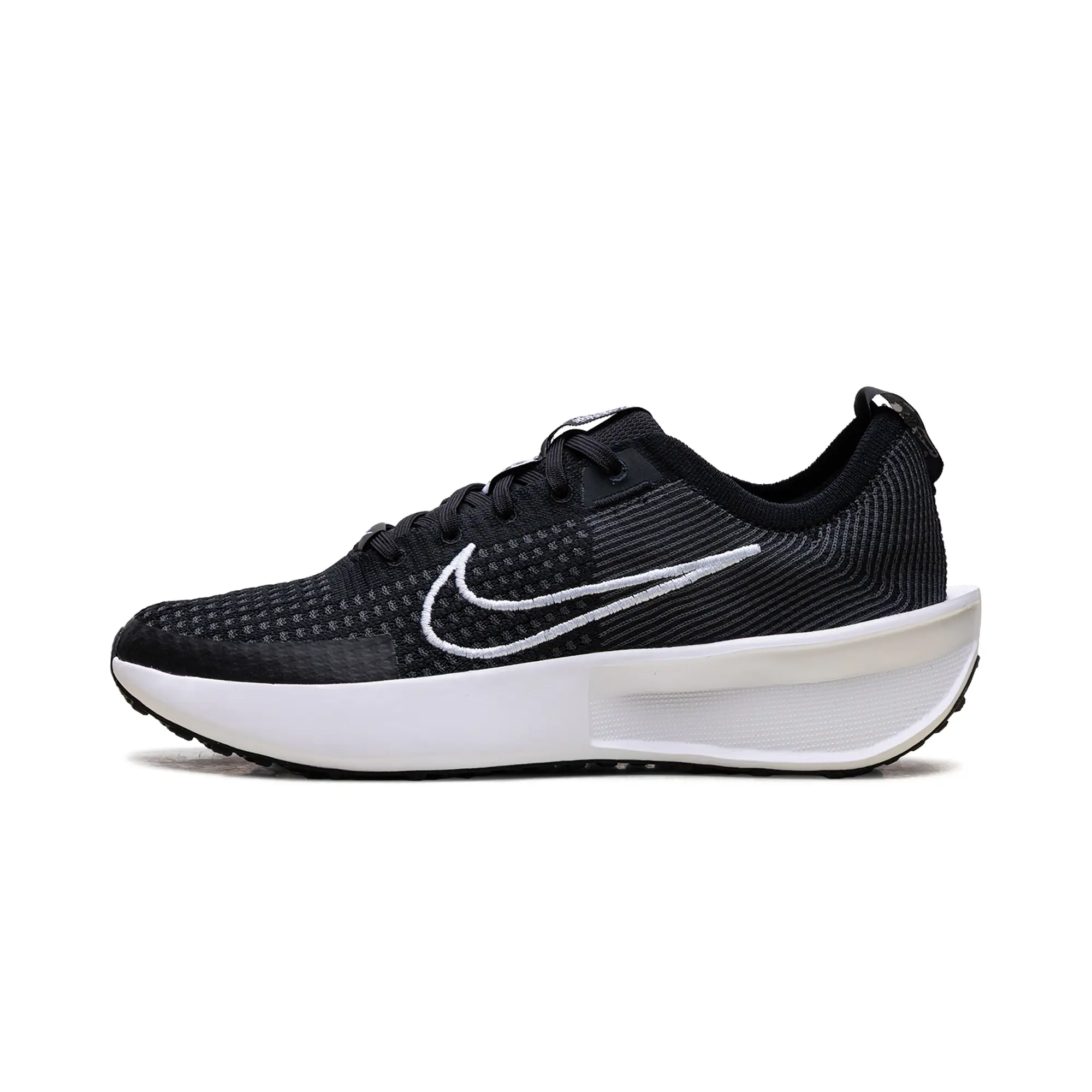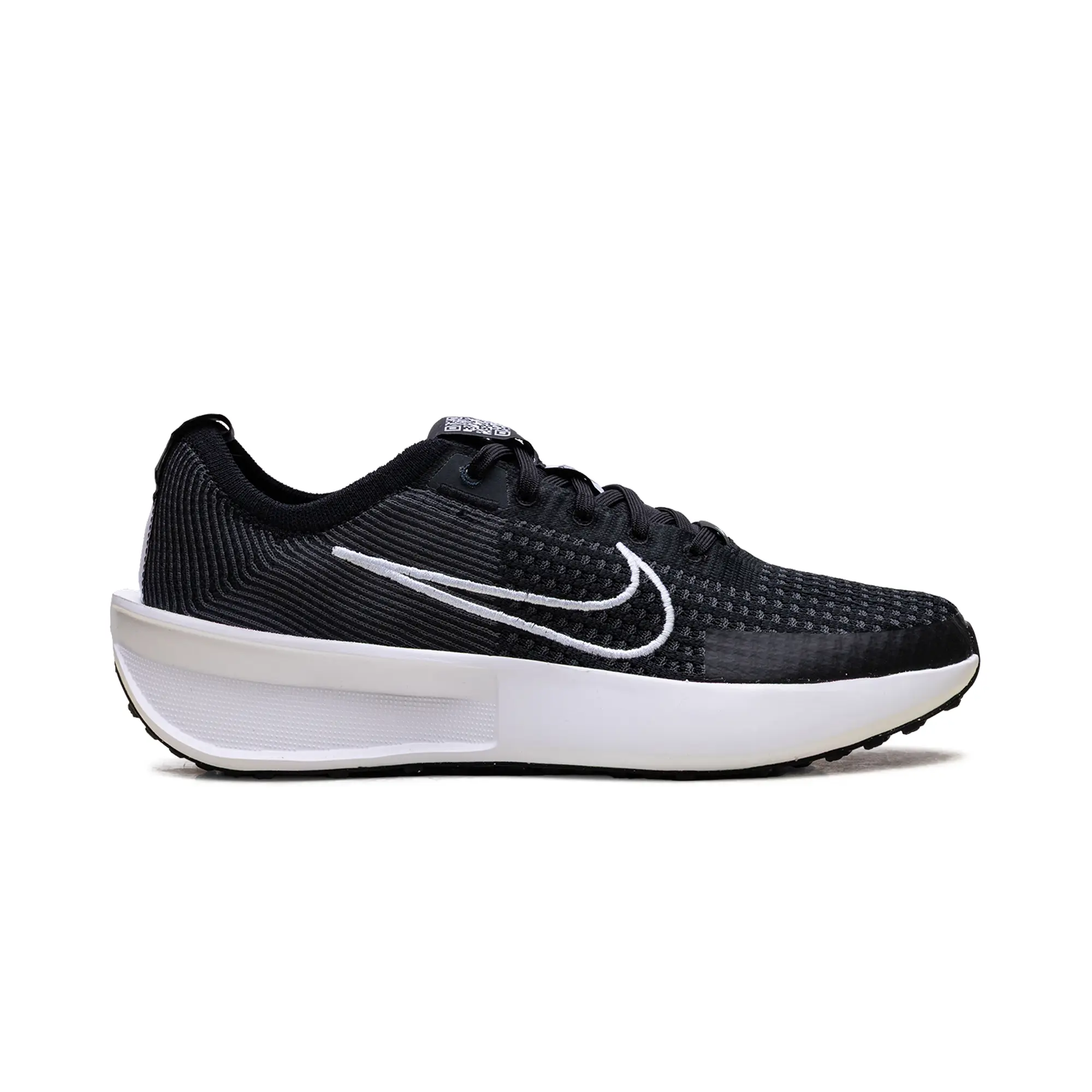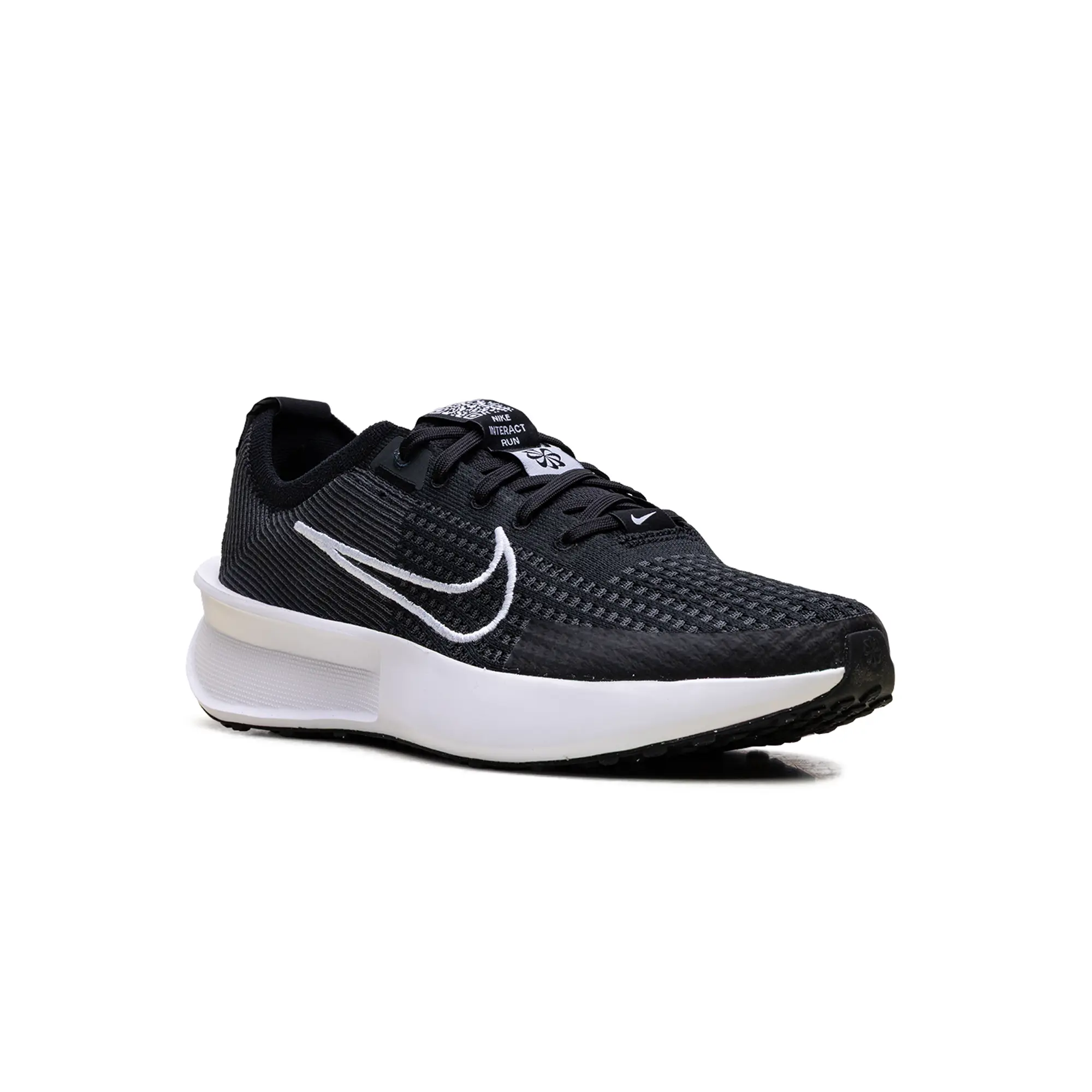 The Nike Interact Run "Black Anthracite White" delivers a clinical, high-status execution of the digitally-connected daily trainer, masterfully blending "Running-Core" heritage with a radical, sustainable technicality. This women's exclusive features a premium landscape of lightweight Flyknit in a deep "Anthracite" black, providing a structural, multi-dimensional foundation for the model’s aerodynamic anatomical profile. The design is defined by its artisanal strike, utilizing specialized embroidered white Swoosh branding and a QR code on the tongue that injects a layer of high-octane luxury into the deconstructed performance build. Grounded by a massive, sculpted white foam midsole featuring plush cushioning for elite daily energy return and finished with a Waffle-inspired traction outsole, this release successfully pairs Nike’s aggressive DNA with a sophisticated, "Monochrome-Vapor-Elite" aesthetic.