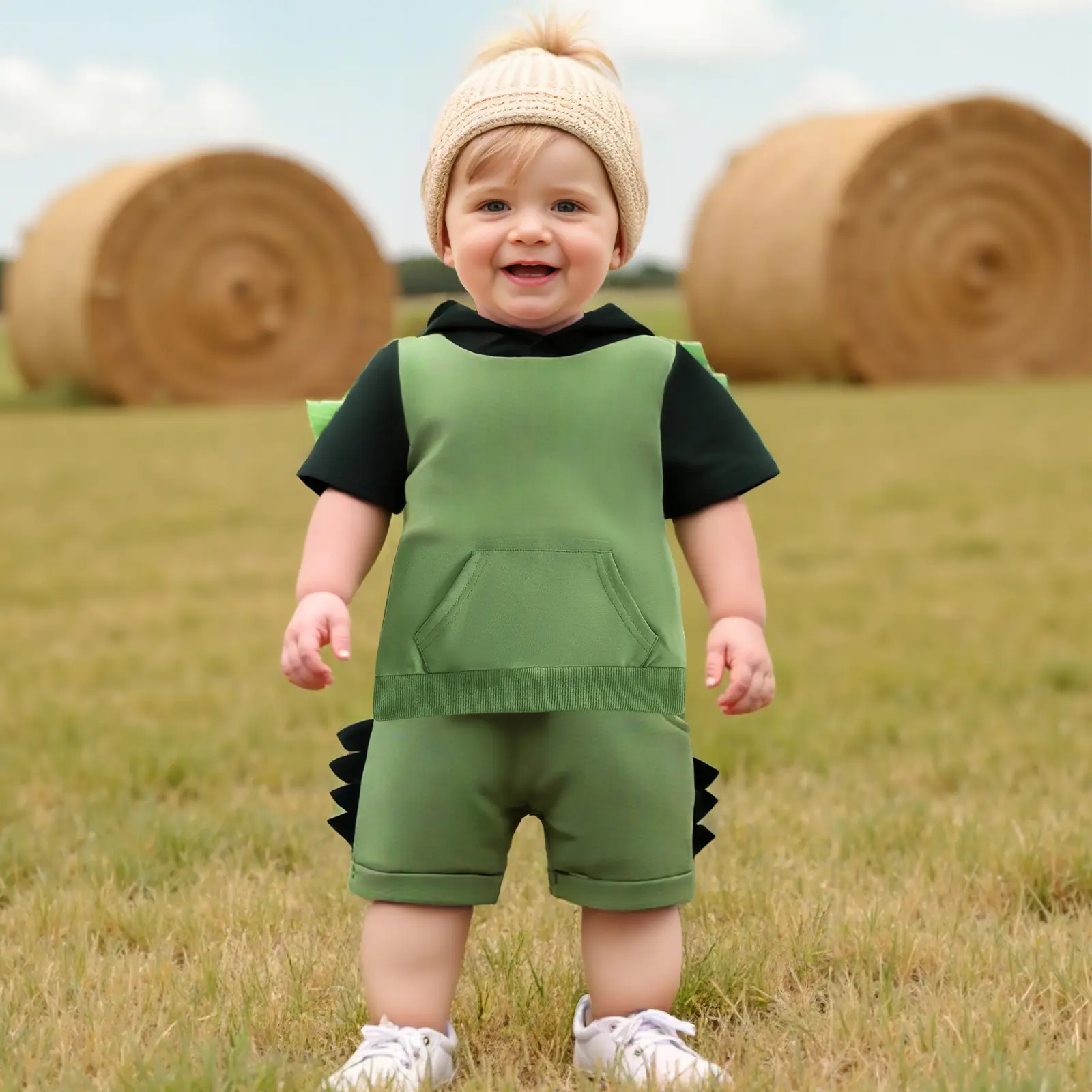 Toddler Boy Summer Clothes Dinosaur Short Sleeve Hood T-Shirt Elastic Waist Pocket Shorts Outfit