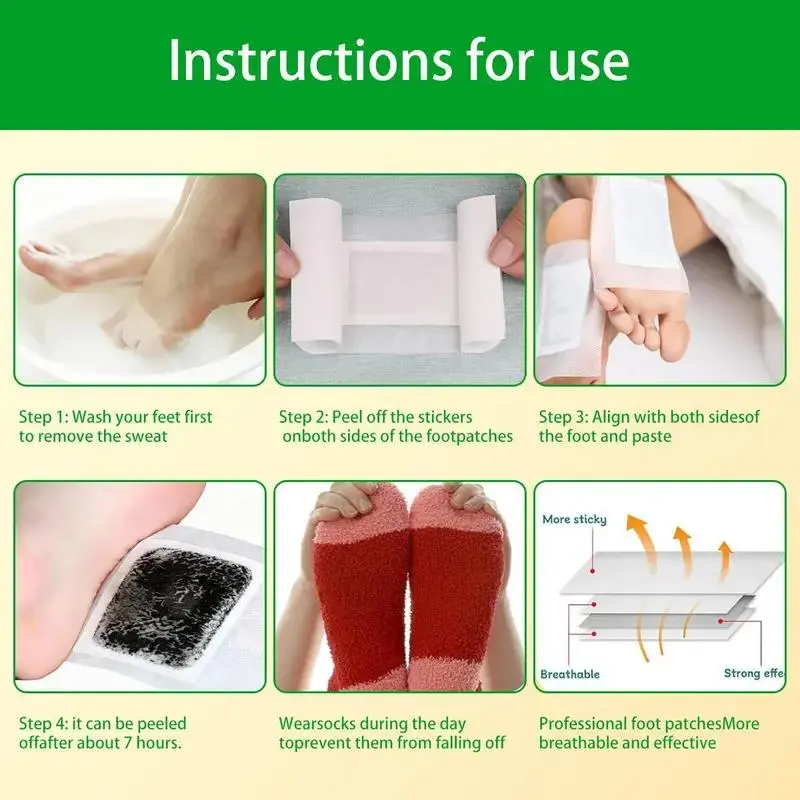 Contains 40pcs detox patches. Made with bamboo charcoal, ginger, and vinegar. These patches support foot care and wellness. Perfect for those seeking natural solutions for foot detox and stress relief. Stay refreshed wherever you go.