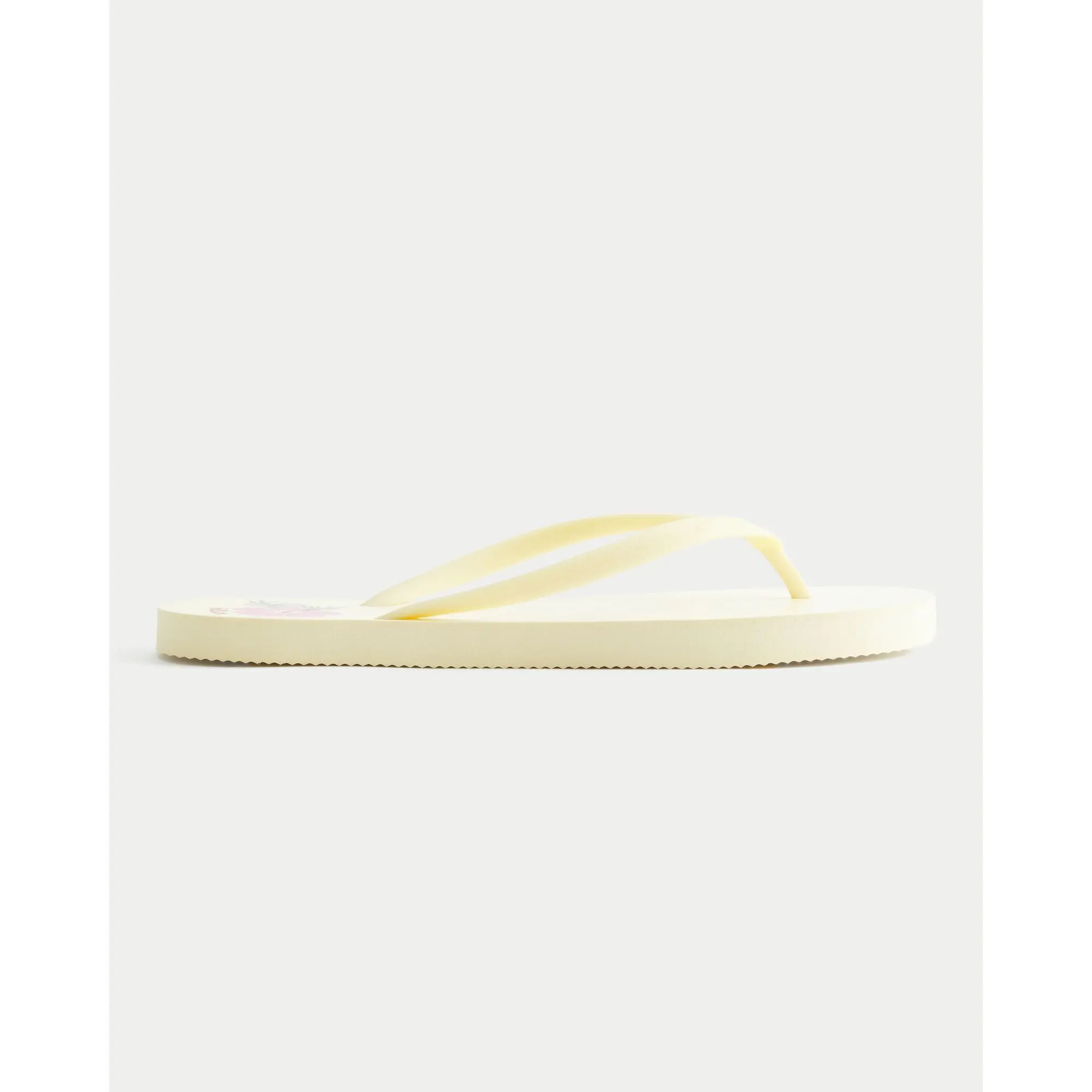 Classic Y2K-inspired rubber flip flops with floral graphics and logo details. Imported.