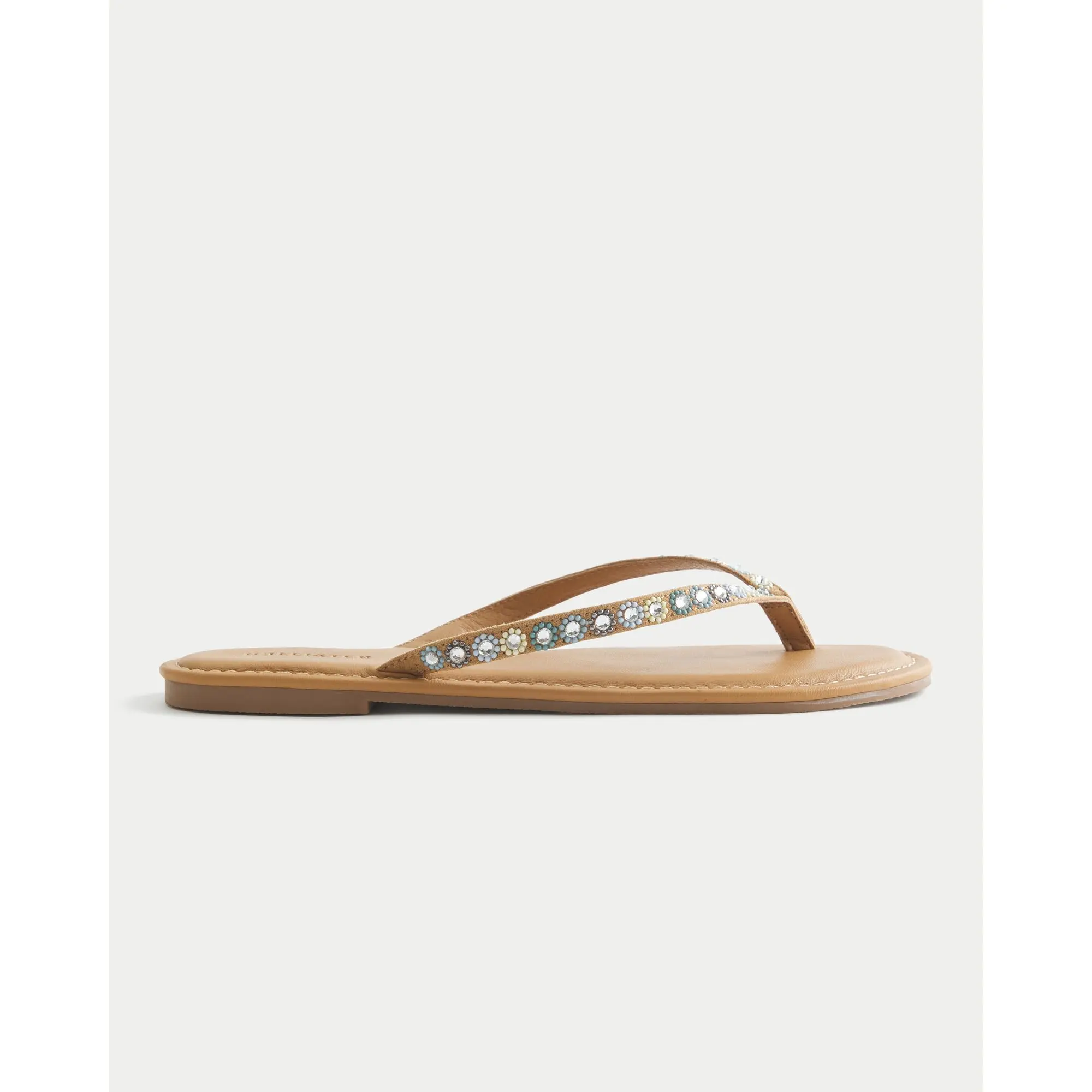 Hollister Colorful Embellished Faux Leather Flip Flops