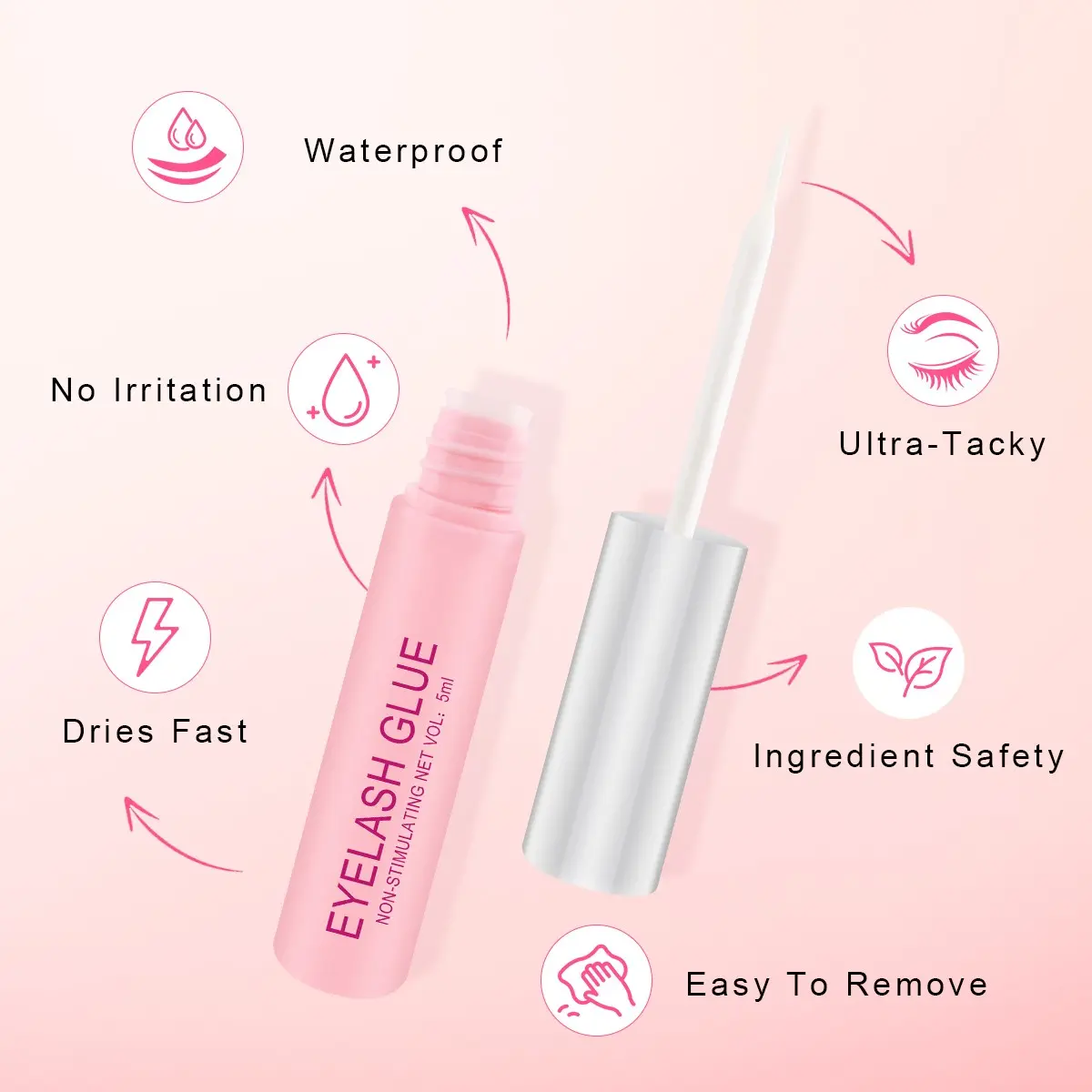 Strong Adhesive Eyelash Glue Waterproof Super Sticky Fast Drying Safe Non-Toxic Gentle for Sensitive Eyes Easy Removal Perfect for Lash Artists