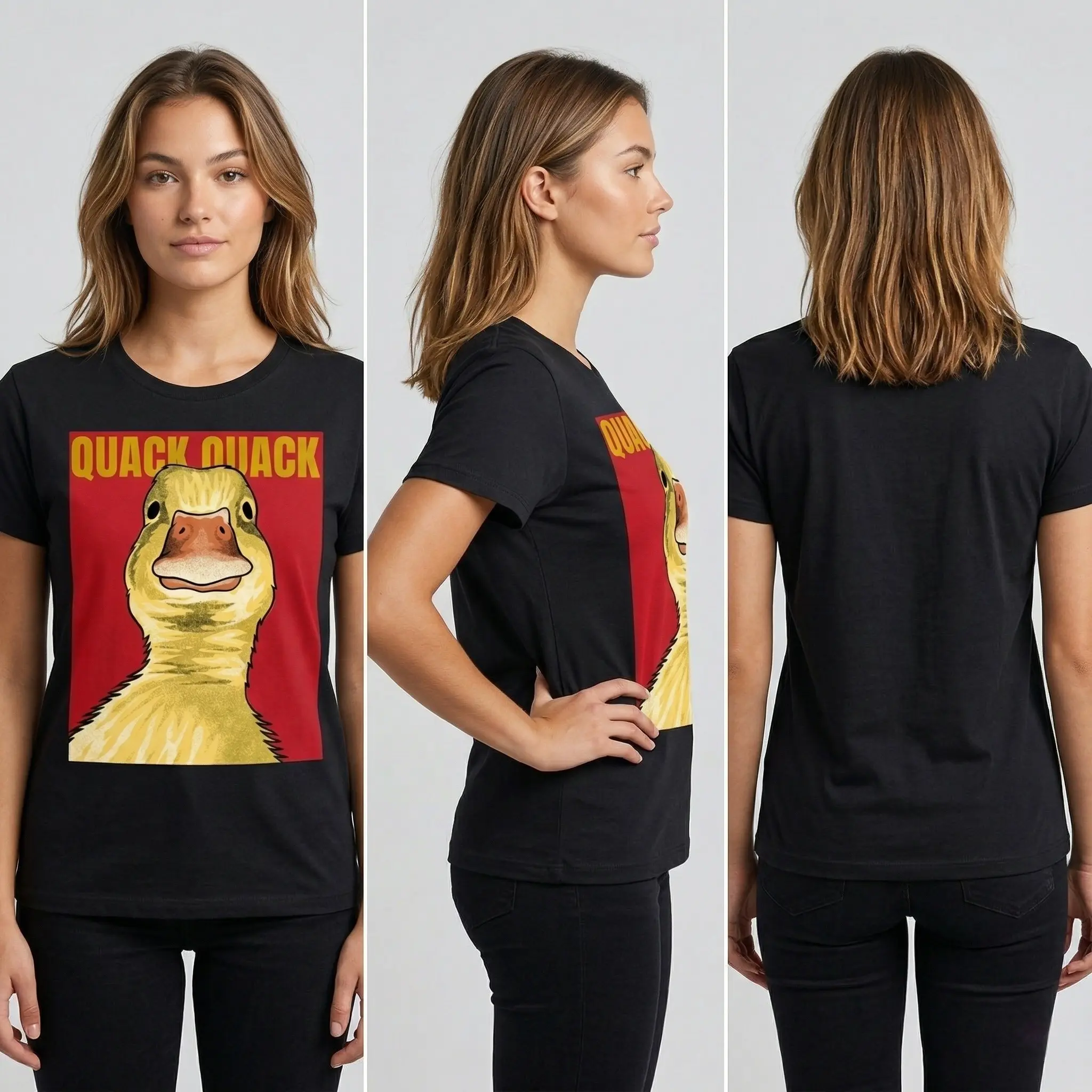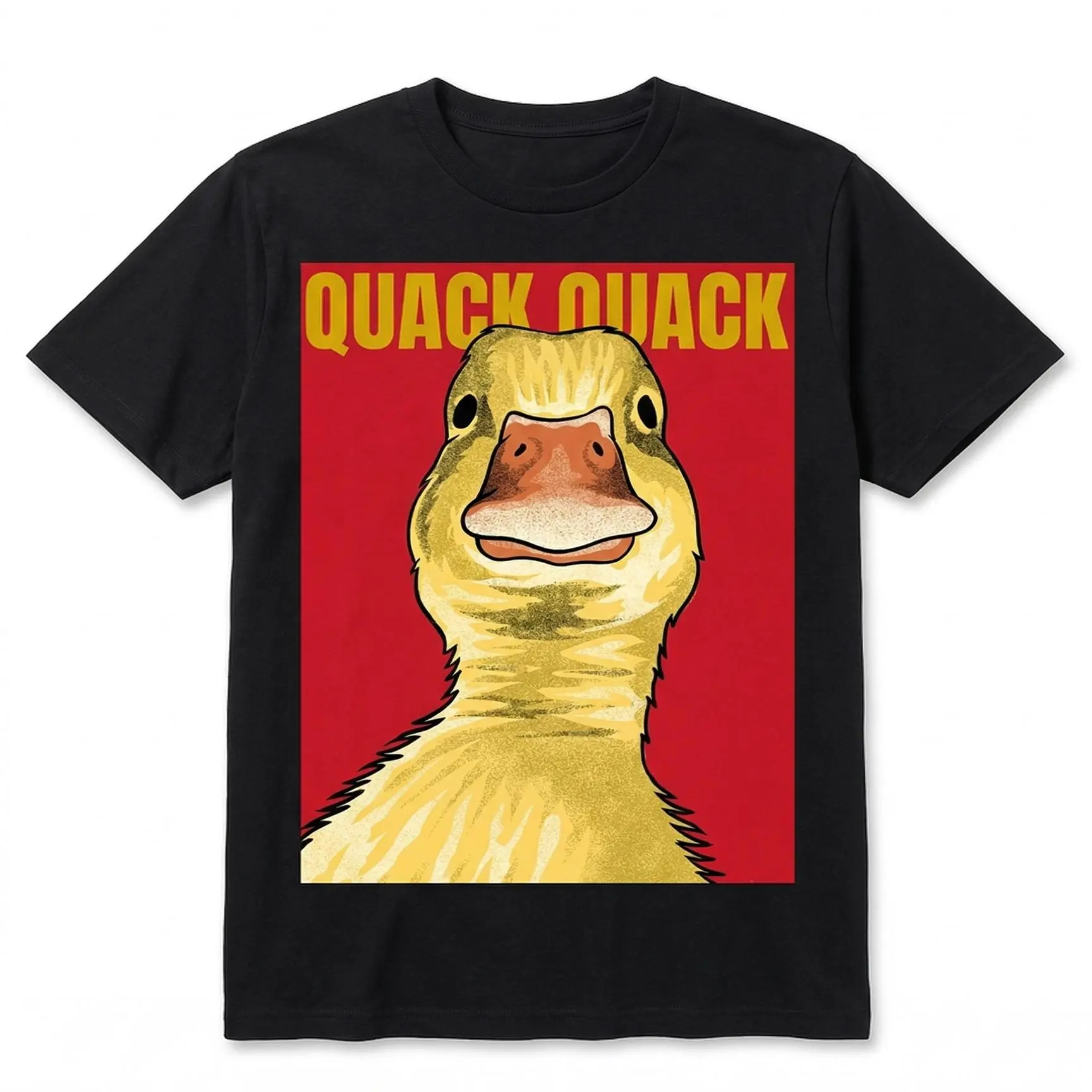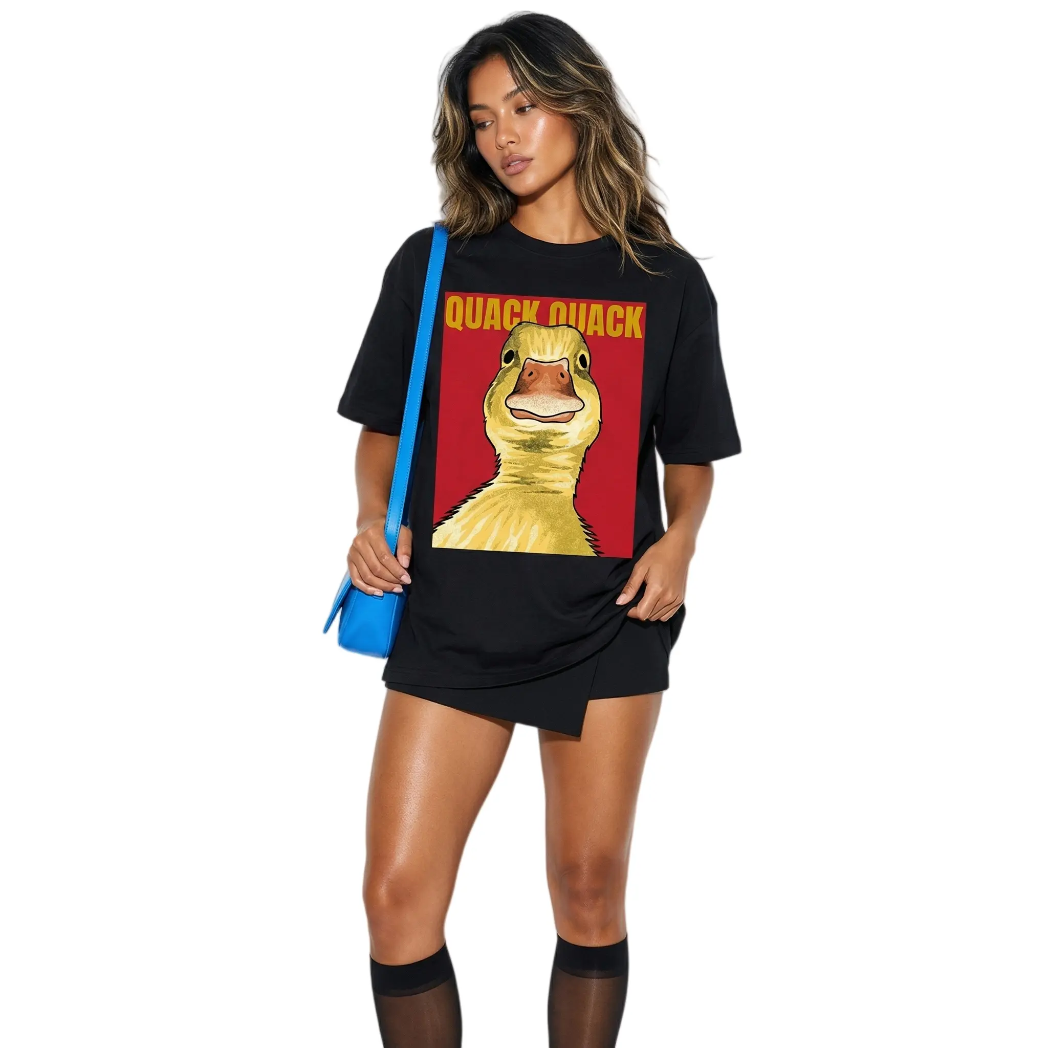Funny Duck Quack Quack Graphic T-shirt Men Women Unisex Casual Black Shirt Oversized Harajuku Streetwear Tee Sweet Wear Outfit Letter Print Top Y2K Aesthetic Cute Animal Novelty Summer Trendy Shirt