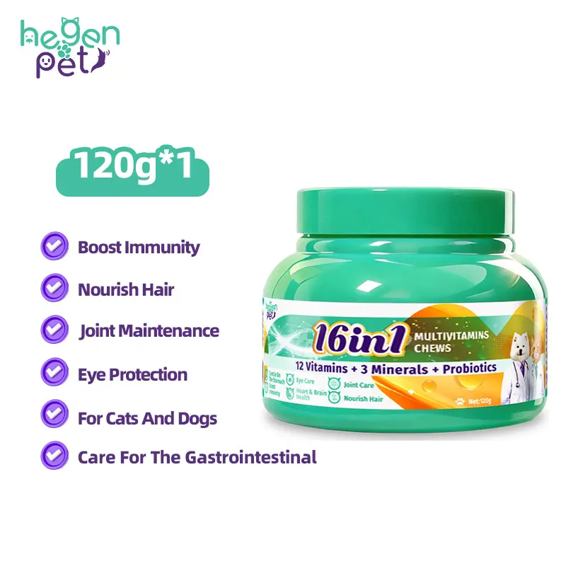 Hegenpet 16-in-1 Multivitamins Chews for Dogs & Cats - 120g Daily Supplement for Shiny Coat, Immune Support, Joint Health & Digestion - Heart-Shaped Nutritious Treats