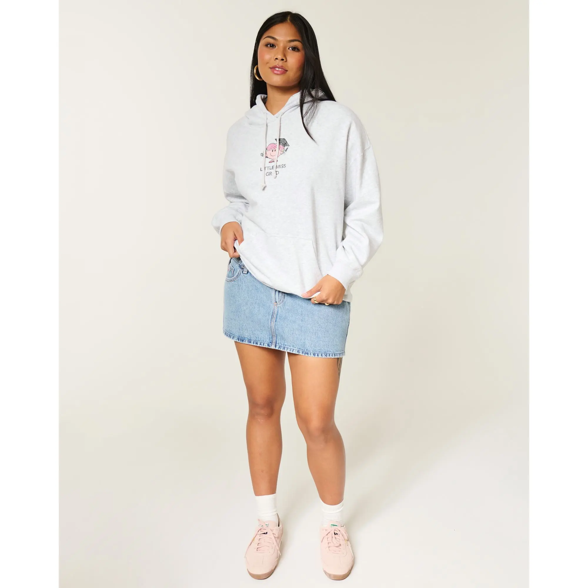 Made with our signature soft fleece fabric, this hoodie features an official licensed Little Miss Grad print graphic and front pouch pocket. Long sleeves, drawstring hood. Oversized Fit. Imported.