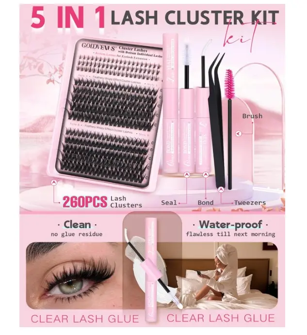 ·3. Long-Lasting, Smudge-Proof Wear with Clean Glue: Secure your stunning eyelash clusters all day with our included waterproof lash cluster glue. This transparent, smudge-proof adhesive is formulated to be gentle and clean, ensuring your false eyelashes stay flawlessly in place.