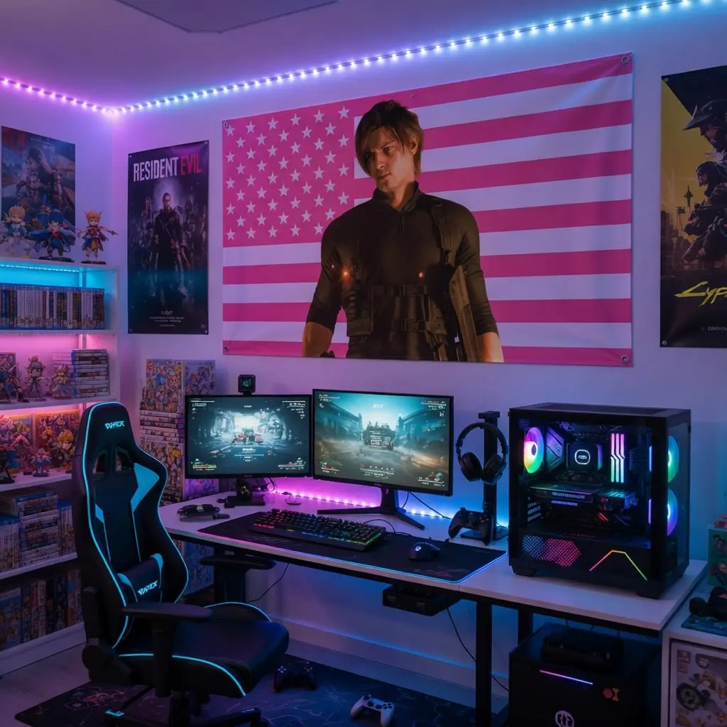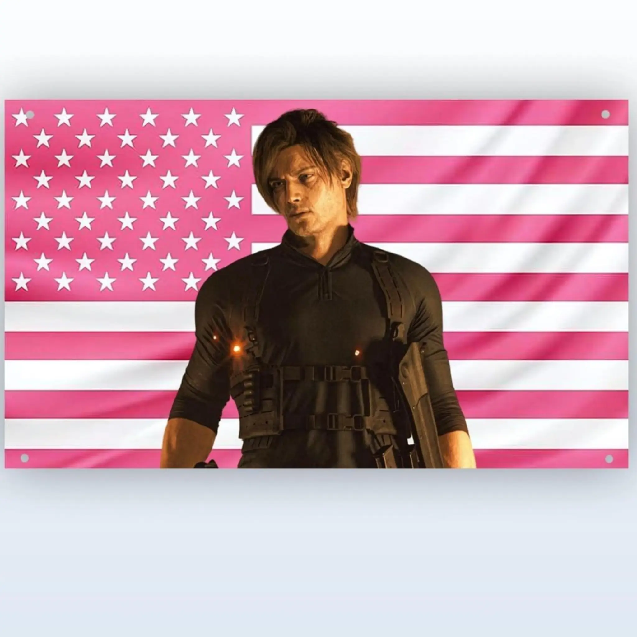 Leon S. Kennedy Poster – Pink American Flag Aesthetic – Gaming Decor