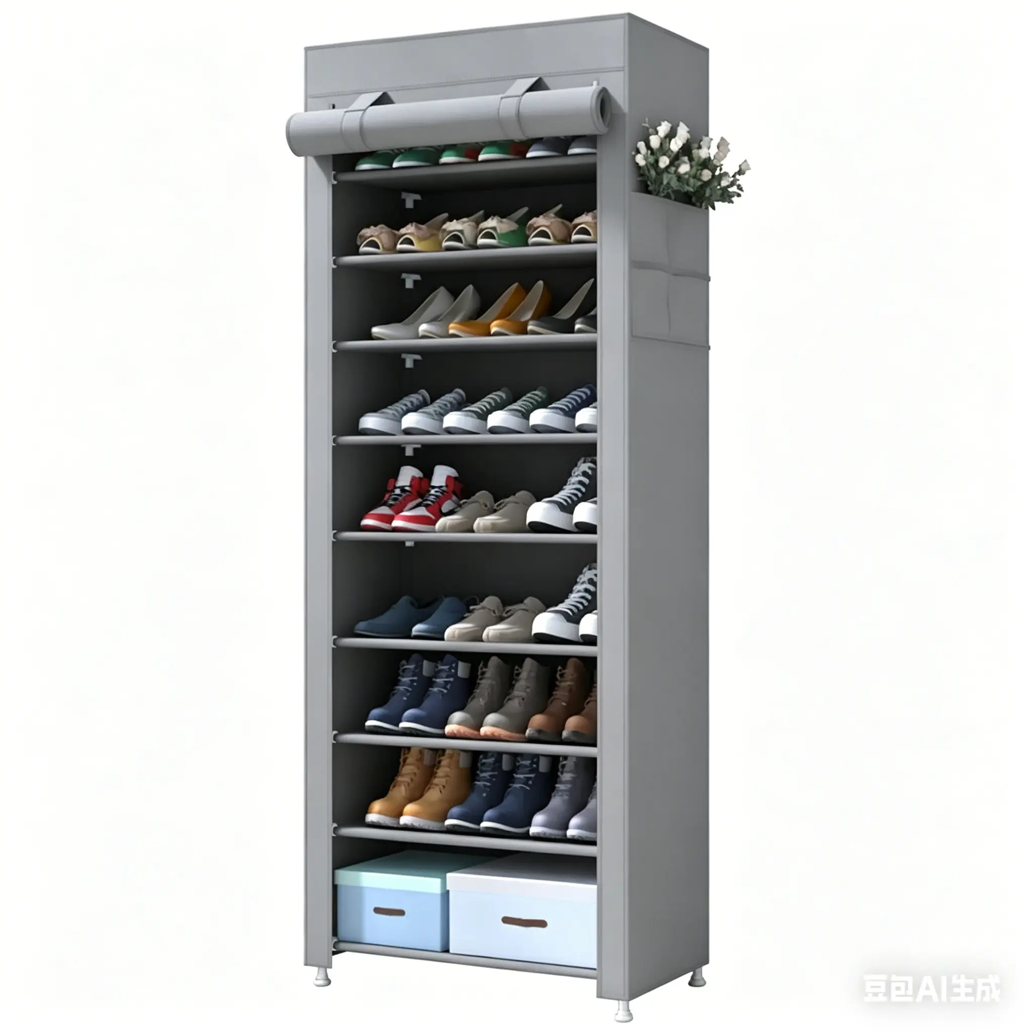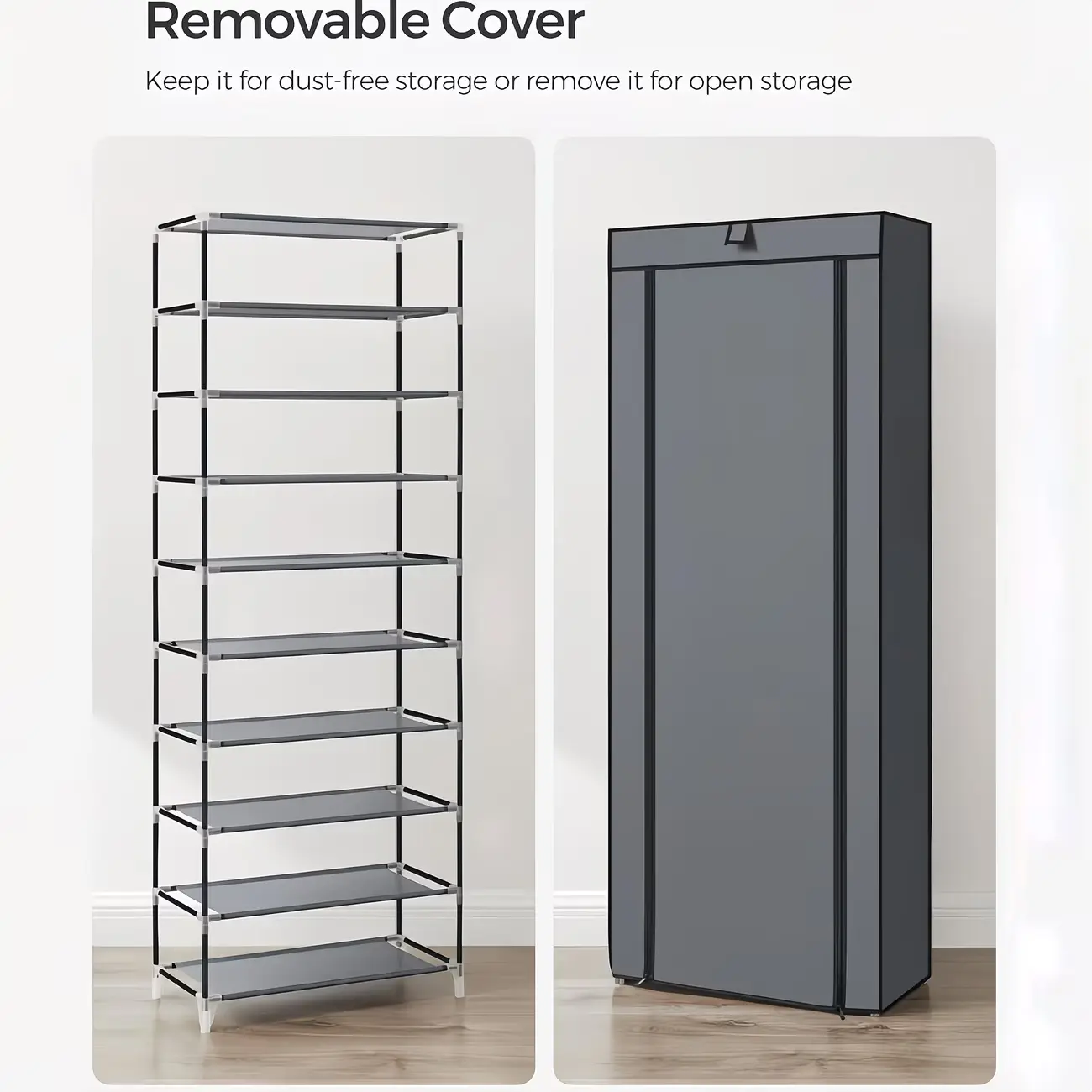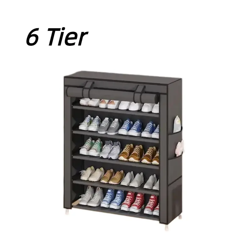Available in 6-10 tiers with extra-large capacity, the independent layered storage easily holds all types of footwear including sneakers, high heels, boots, slippers and more—no more messy shoes piling up on the floor!