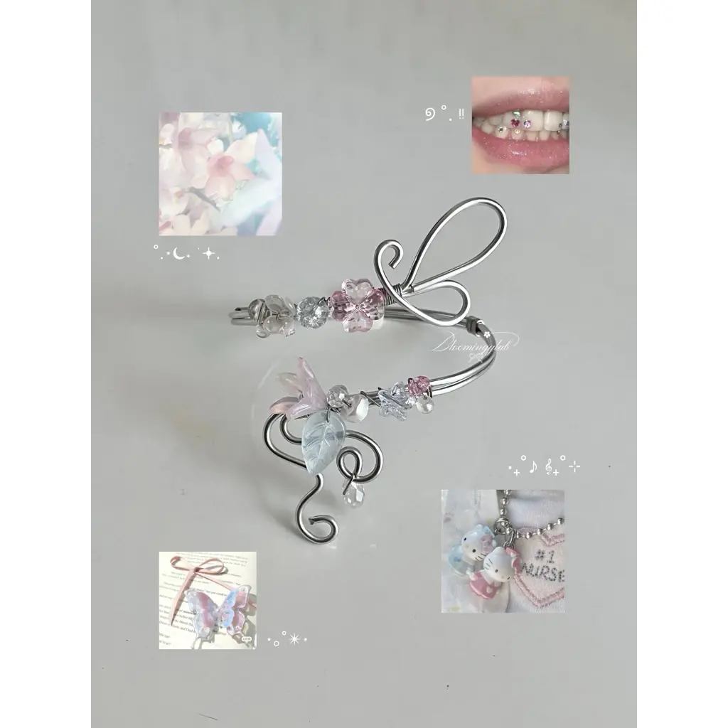 Crafted with a flexible aluminum base, combined with a mix of stones, acrylic, and glass beads for a unique and eye-catching look
