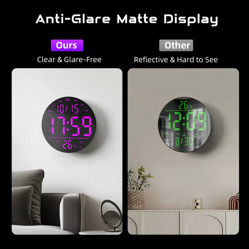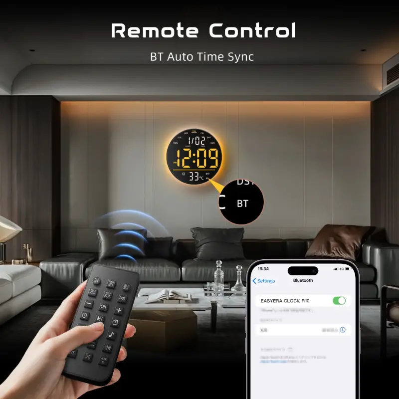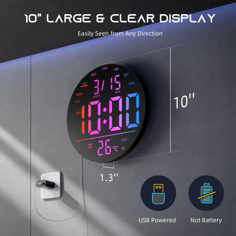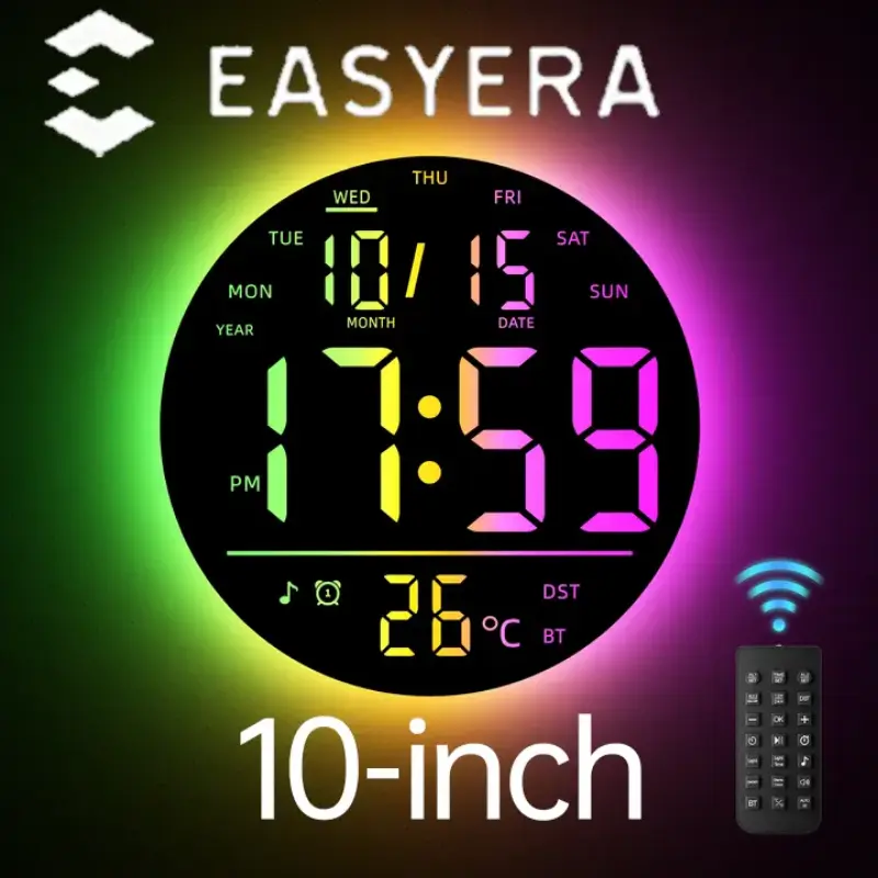 EASYERA 10" Large Circle Digital Wall Clock with Remote Control, Music-Sync, Round clock with RGB Atmosphere Lights with 11 Scenes Mode, Dual Alarms, Timer Clock for ADHD, Focus Tool, Classroom, Game Decor Goods Auto Dst Adjustment.