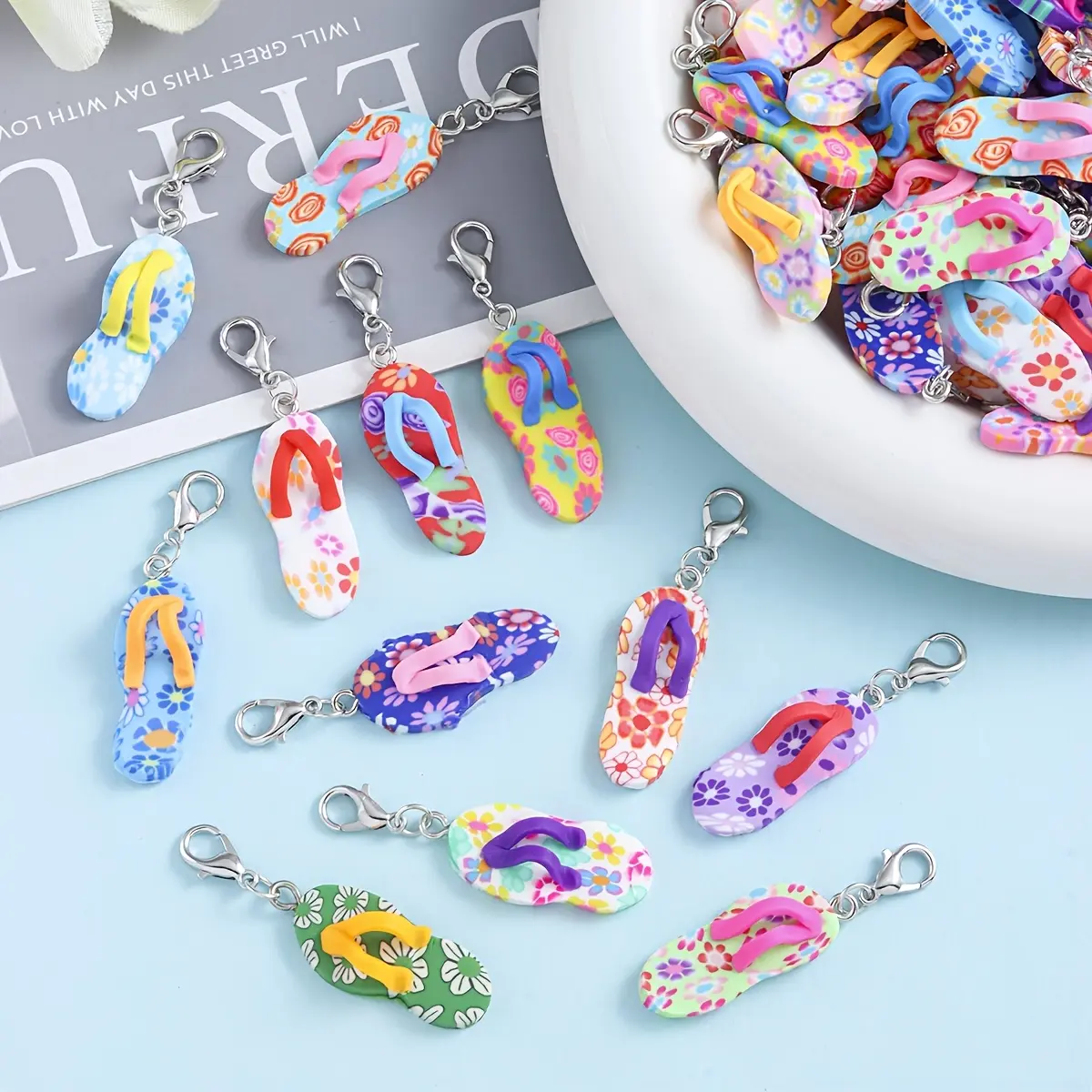 Elevate your DIY crafts with these adorable Mini Flip Flop Resin Charms! Made from durable, lightweight resin, each charm features a cute 3D flip flop design with vibrant floral prints and colorful straps. Equipped with a sturdy lobster clasp, they’re perfect for jewelry making, keychains, bag charms, and bracelet accessories. A fun, summery addition to any craft project, ideal for DIY lovers and summer-themed creations.