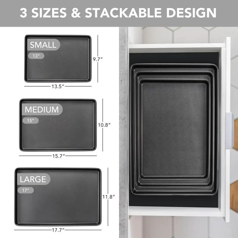 Baking Sheet Pan Set of 3, Nonstick Cookie Sheets for Oven, Heavy Duty Carbon Steel Half & Jelly Roll Pans with Diamond Texture Pattern, 0.8mm Thick Durable Baking Trays