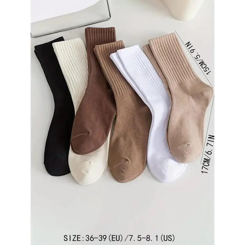 Women's Solid Socks, Fashion Casual Basic Cozy Breathable Socks for Daily Wear, Women Socks for All Seasons