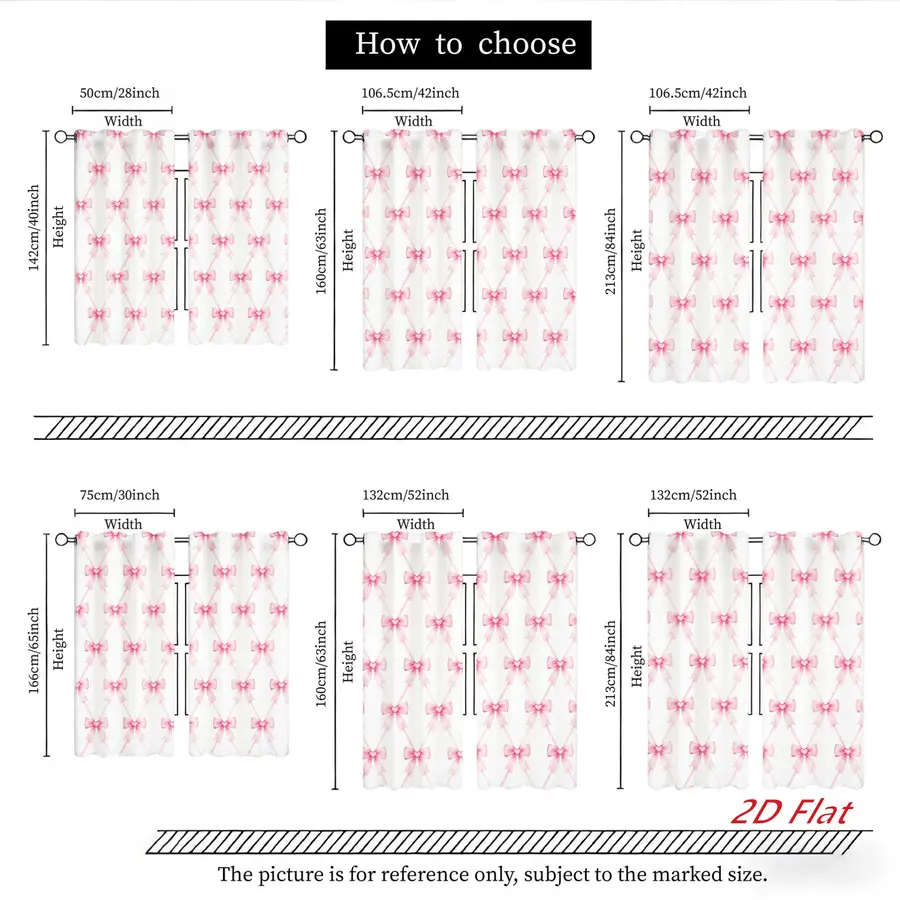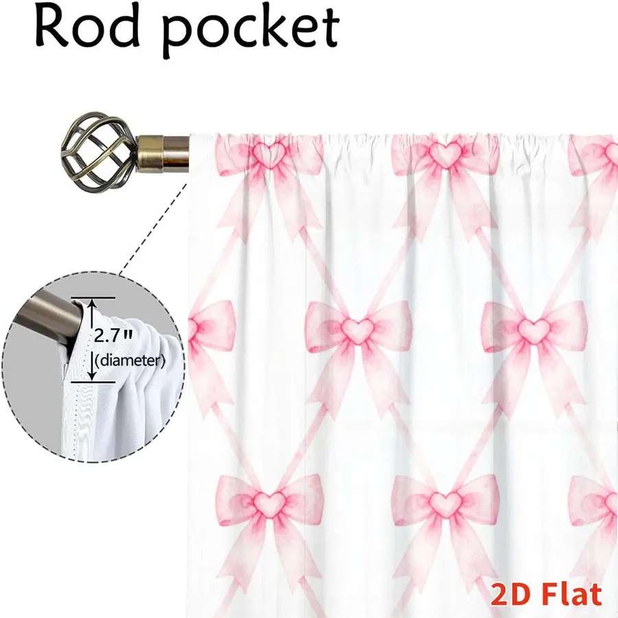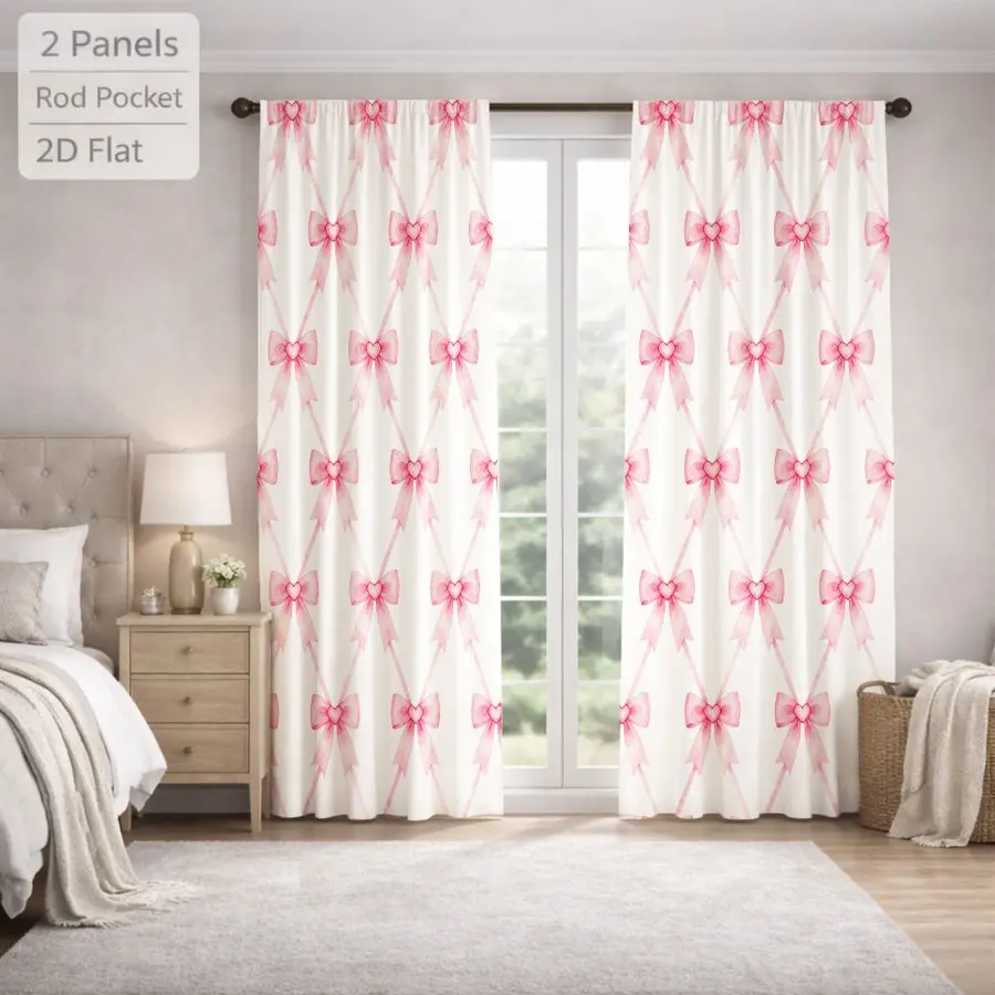 2Pcs Cute Pink Bowknot Pattern Curtains Digital Printed Rod Pocket for Bedroom Office Kitchen Living Room Study Home Decor Soft Light Filter Easy Installation