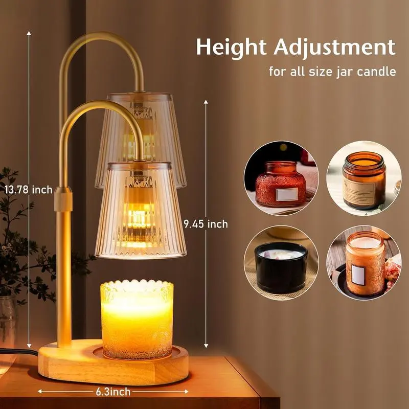Adjustable Candle Warmer Lamp with Timer & Dimmable Light, Electric Flameless Wax Melter for Small Jar Candles, Height Adjustable Top-Down Heater, Modern Home Desk Decor, Perfect Gift for Women & Mom on Birthday