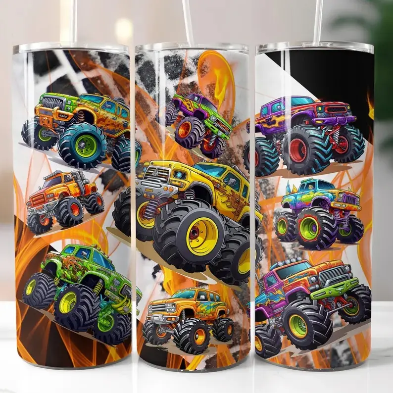 Monster Truck Tumbler, Rugged Vehicle Inspired Drinkware for Coffee, Tea, and Enthusiasts Who Love Action and Monster Truck Motors
