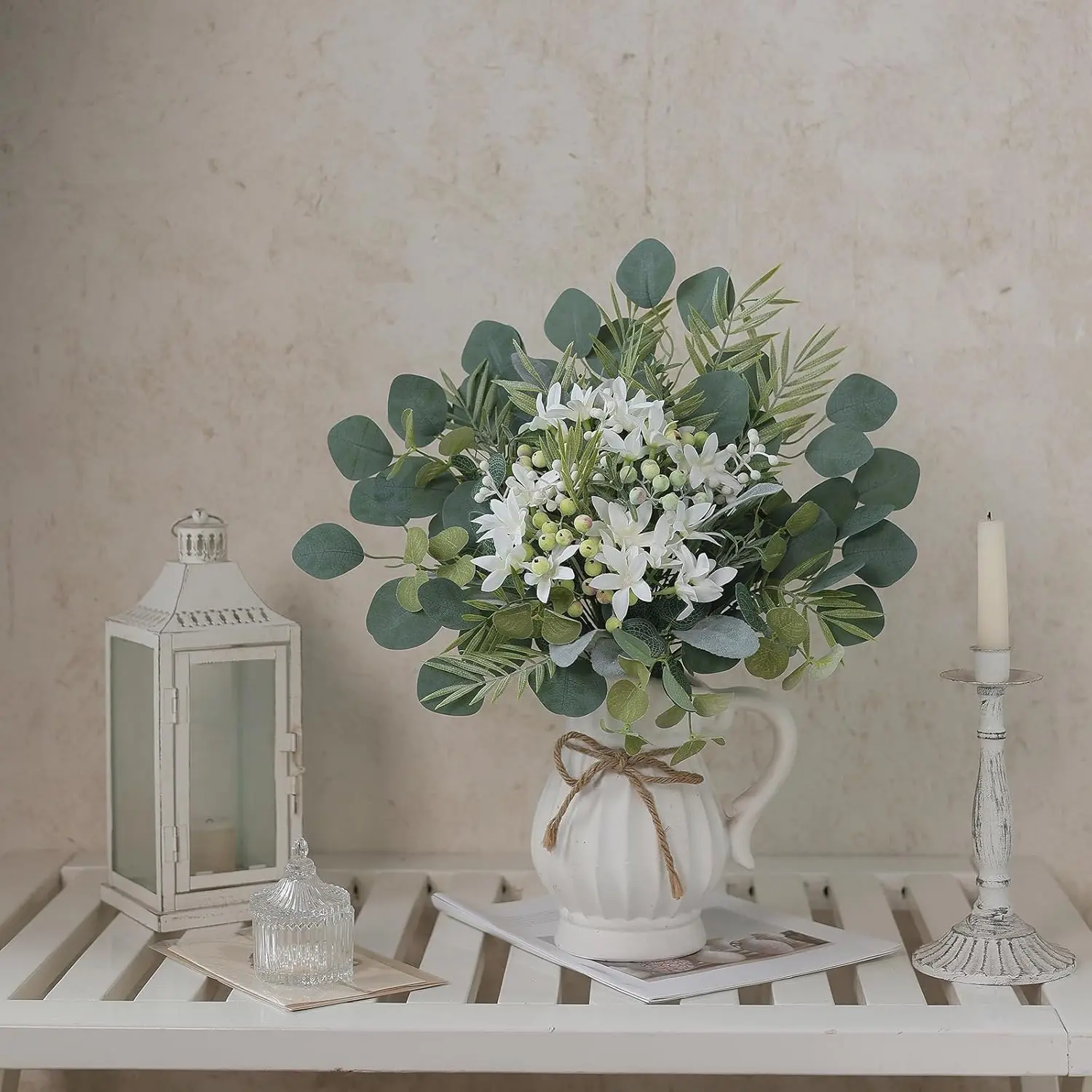 ·【Quality materials】: The leaves and flowers are made of quality silk and plastic, and the stems are made of wire, so you can bend or cut them as needed. These eucalyptus leaf stems and artificial flowers are made of quality materials that are durable enough that you don't have to worry about wilting or fading or spend time watering and caring for them.