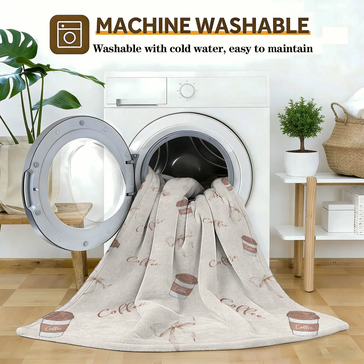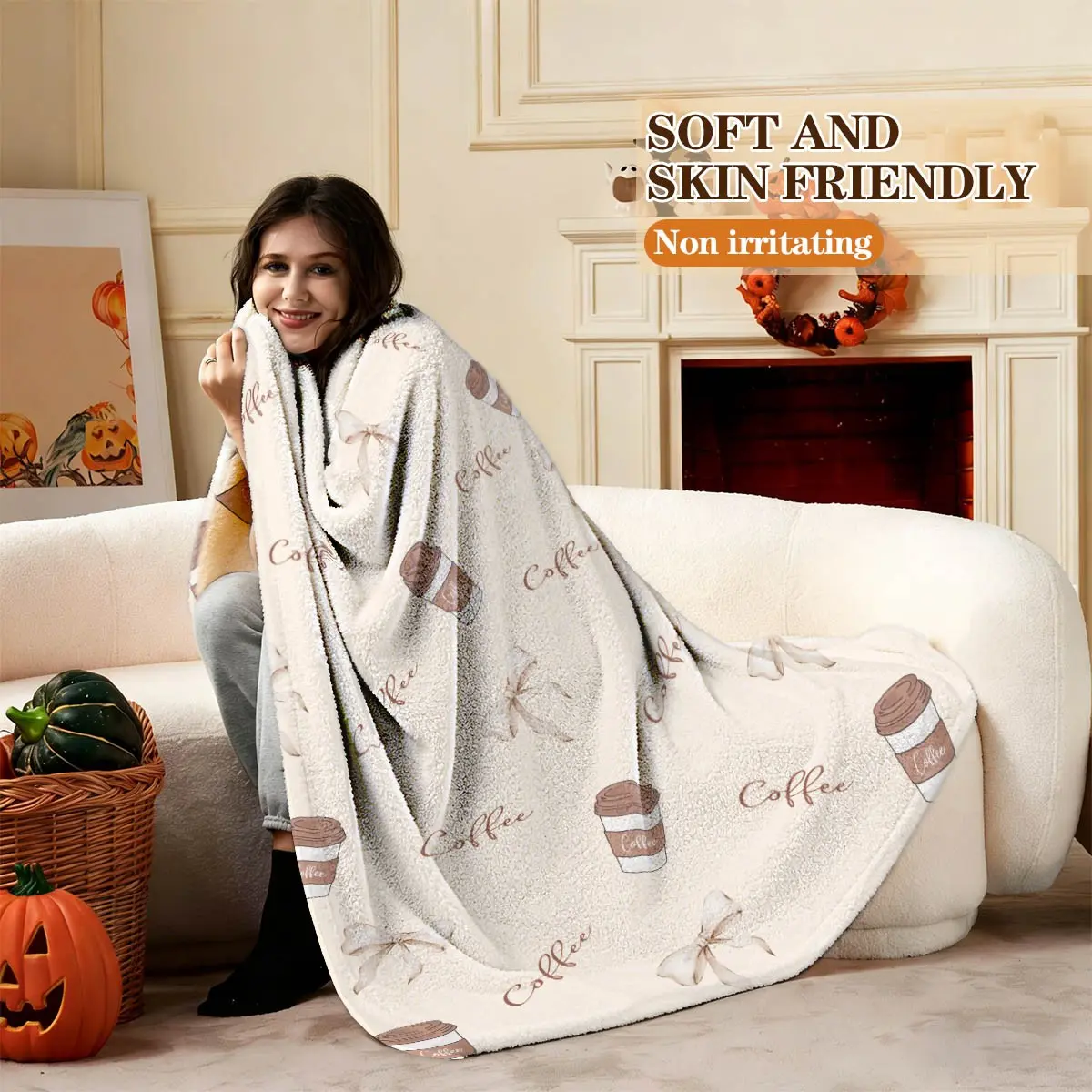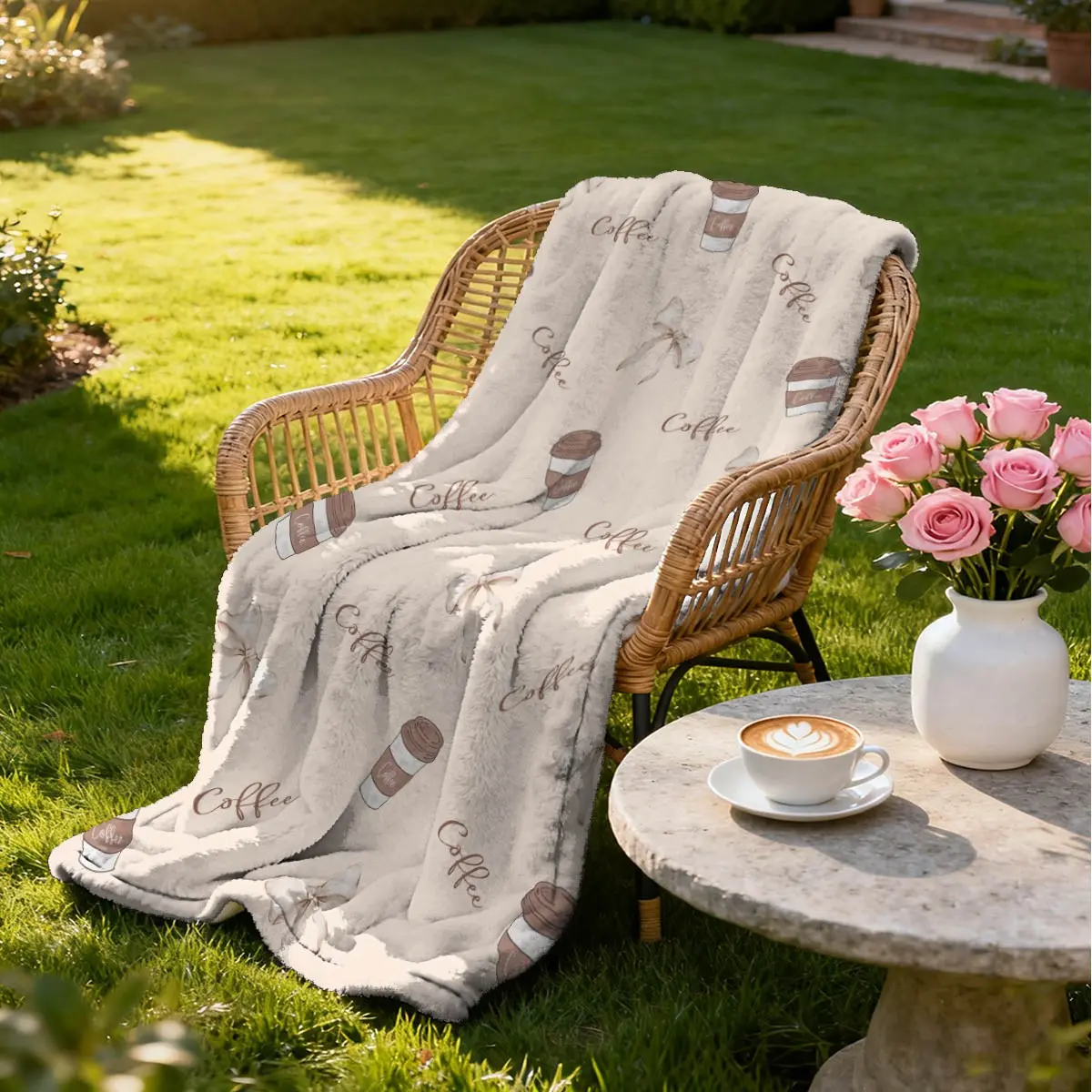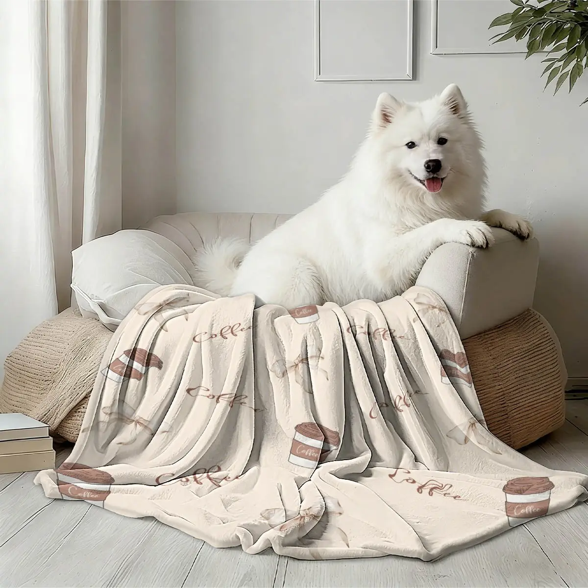 Coffee Theme Print Blanket, Soft Flannel, Breathable and Warm, Bedroom Decor, Gift, Pet Blanket, All Seasons