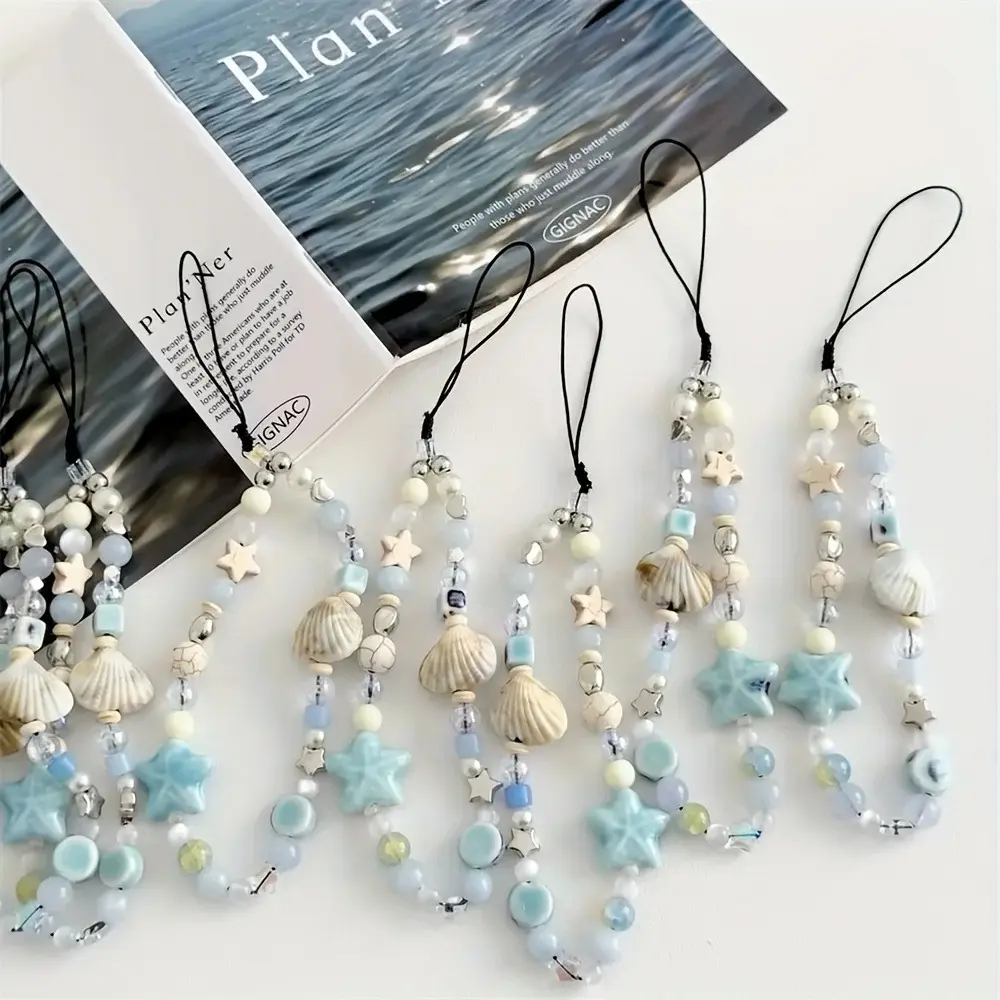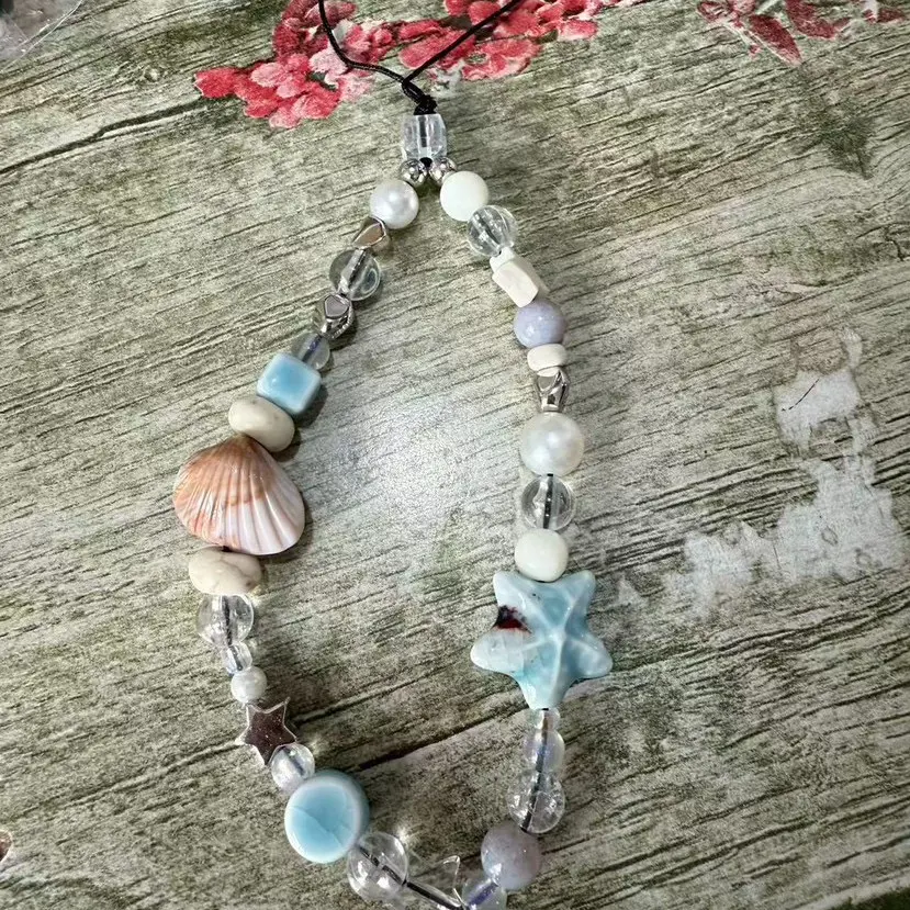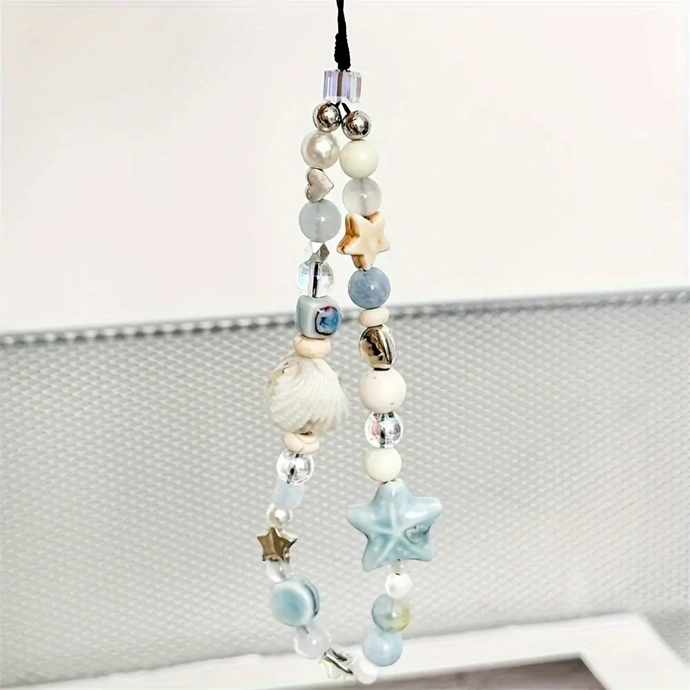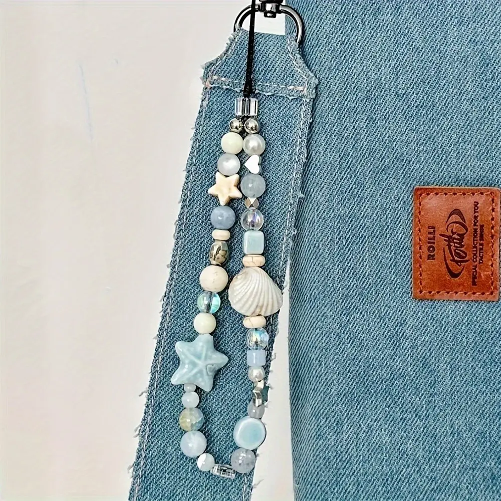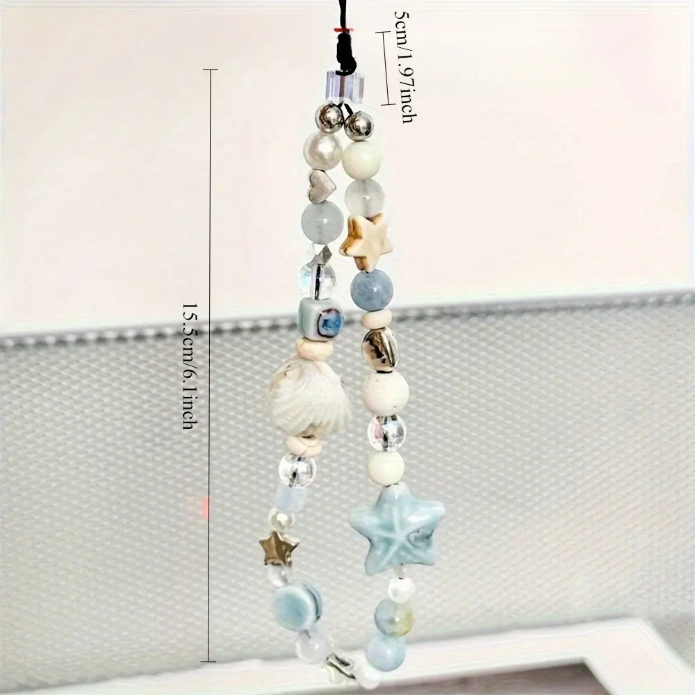 【Charming detail】: Featuring blue star seashells, this phone strap adds a touch of marine charm to your everyday accessories.