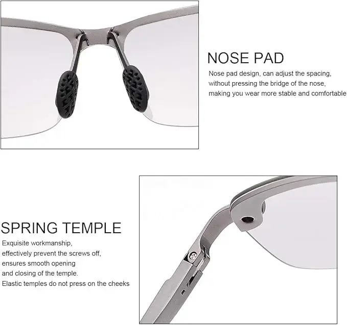 ·Integrated Nose Pad: The combination of plastic and metal hinges ensures durability and comfort, preventing hair from getting stuck in the nose pad when worn on the head.