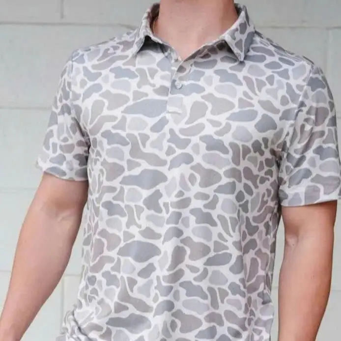 Classic Deer Camouflage Polo Shirt for Men Short Sleeve Outdoors Fishing Golf, Cozy Fit, Perfect Any Season, Full Color