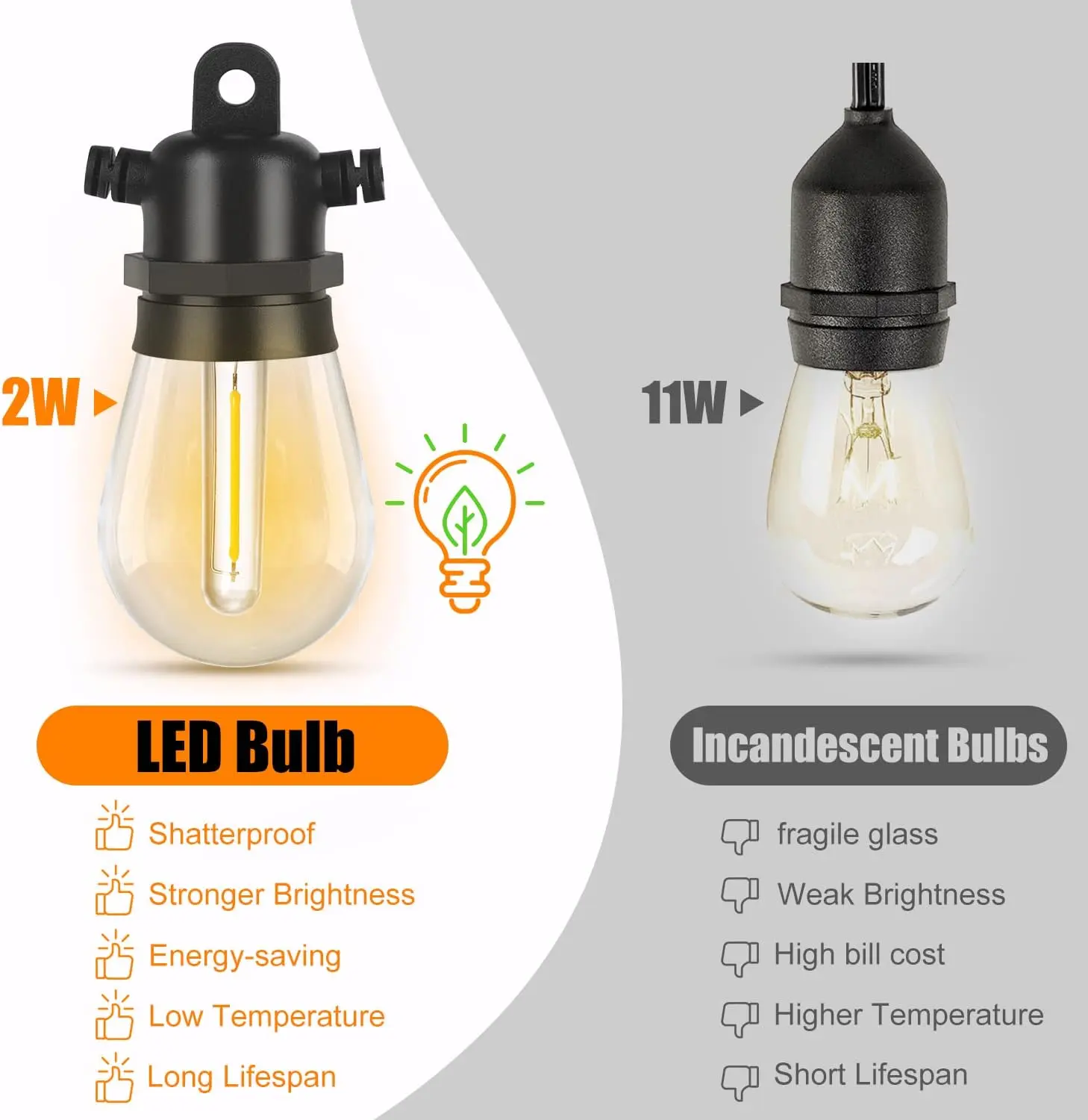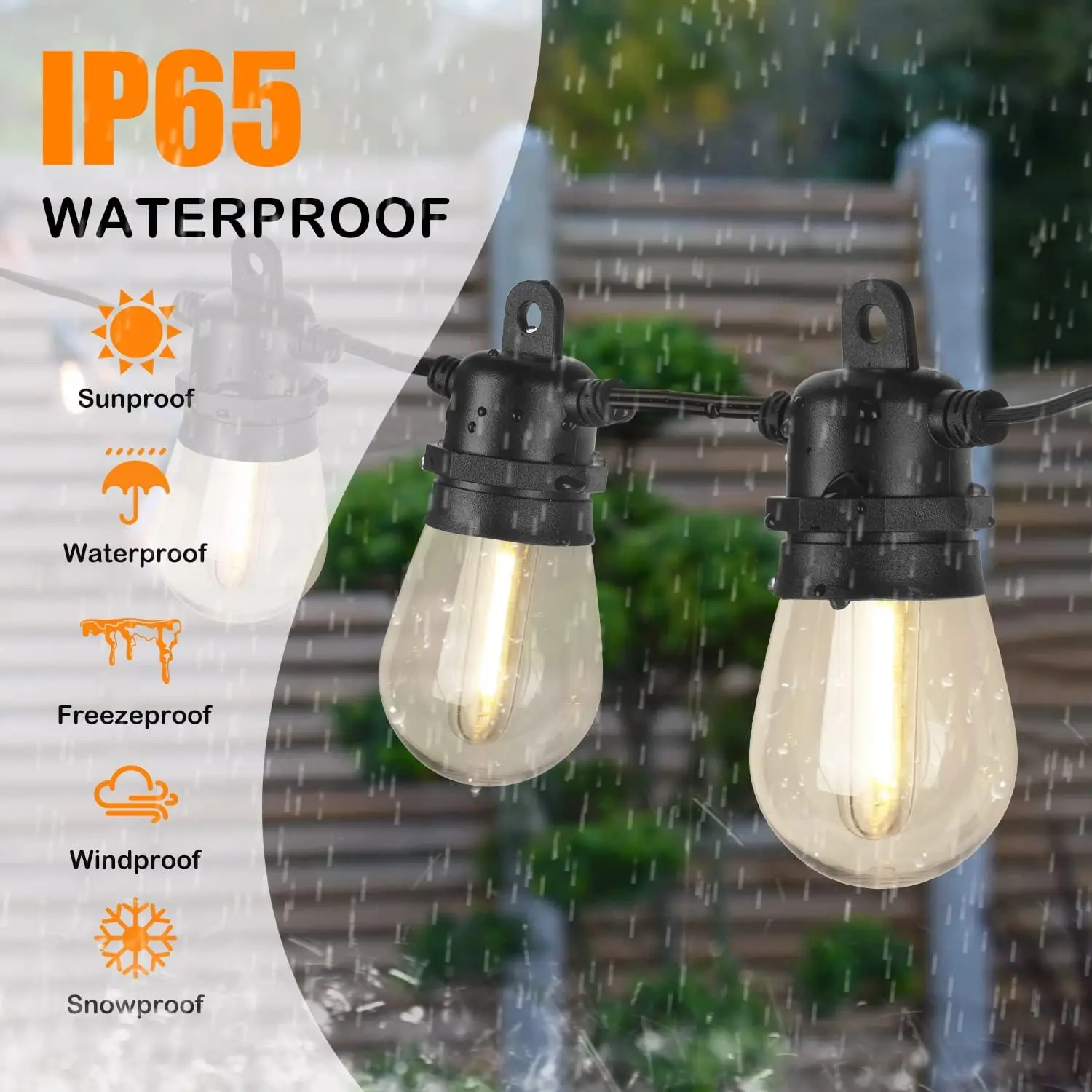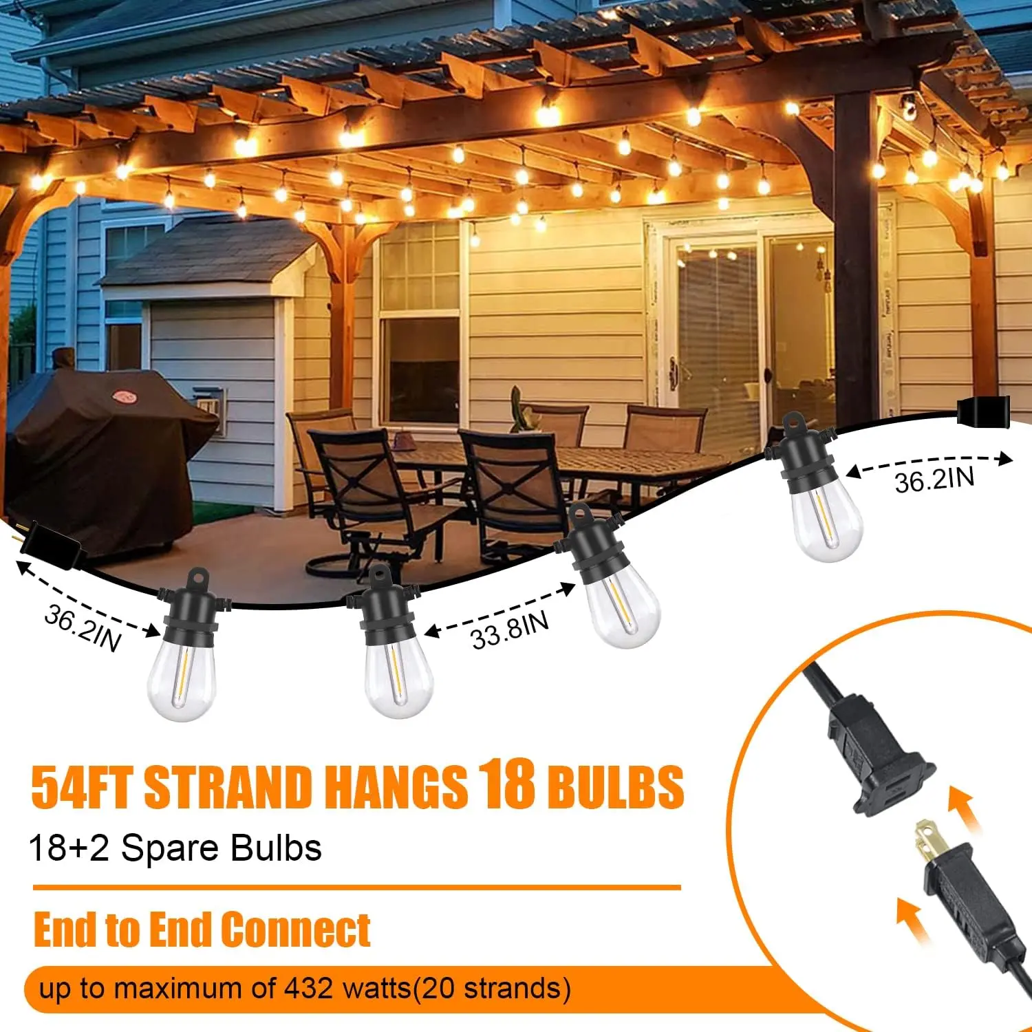 Waterproof IP 65 string lights 54FT ×1 Spare string light bulb 2 Spare fuse 1 Brightness 2700K Warm White Bulb Number of bulbs 18+2 spare