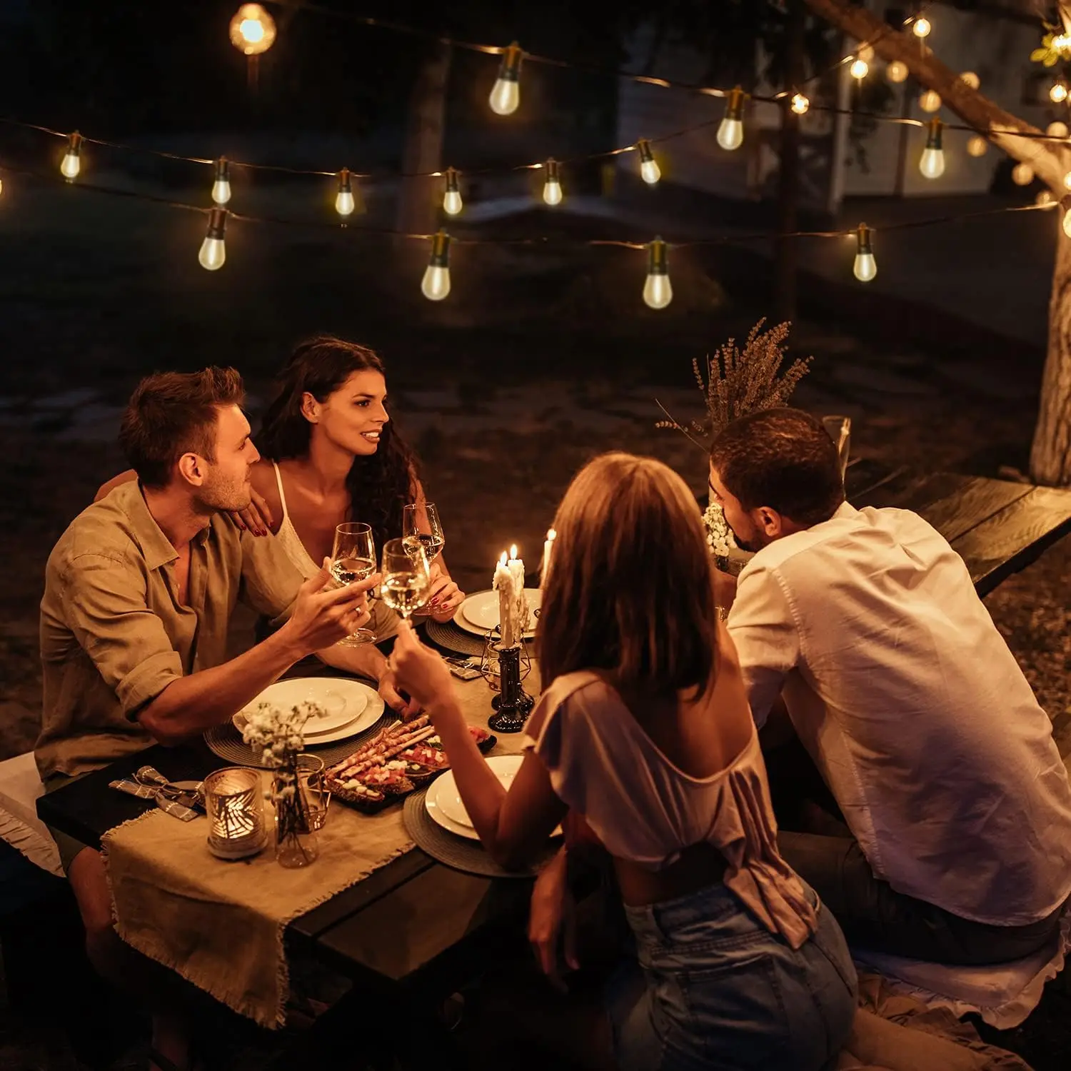 Summer is a great time to chill at your patio or backyard. Longer days and milder weather make it a wonderful experience to just relax with friends and families. Many People add string lights by hanging them across the space or onto the pergola or the wall. These festive sparkles add so much more good vibes to the place and sometimes help the good times last longer as the sun goes down. If you are thinking of creating a nice place at your yard or patio, string lights should not be missed on your list! string lights are used outdoors every day. Social activities and places like weddings, reunions, parties, etc. These lights give warmth to the environment, helping the participants feel relaxed and acclimatizing with the socialite of the get-together.