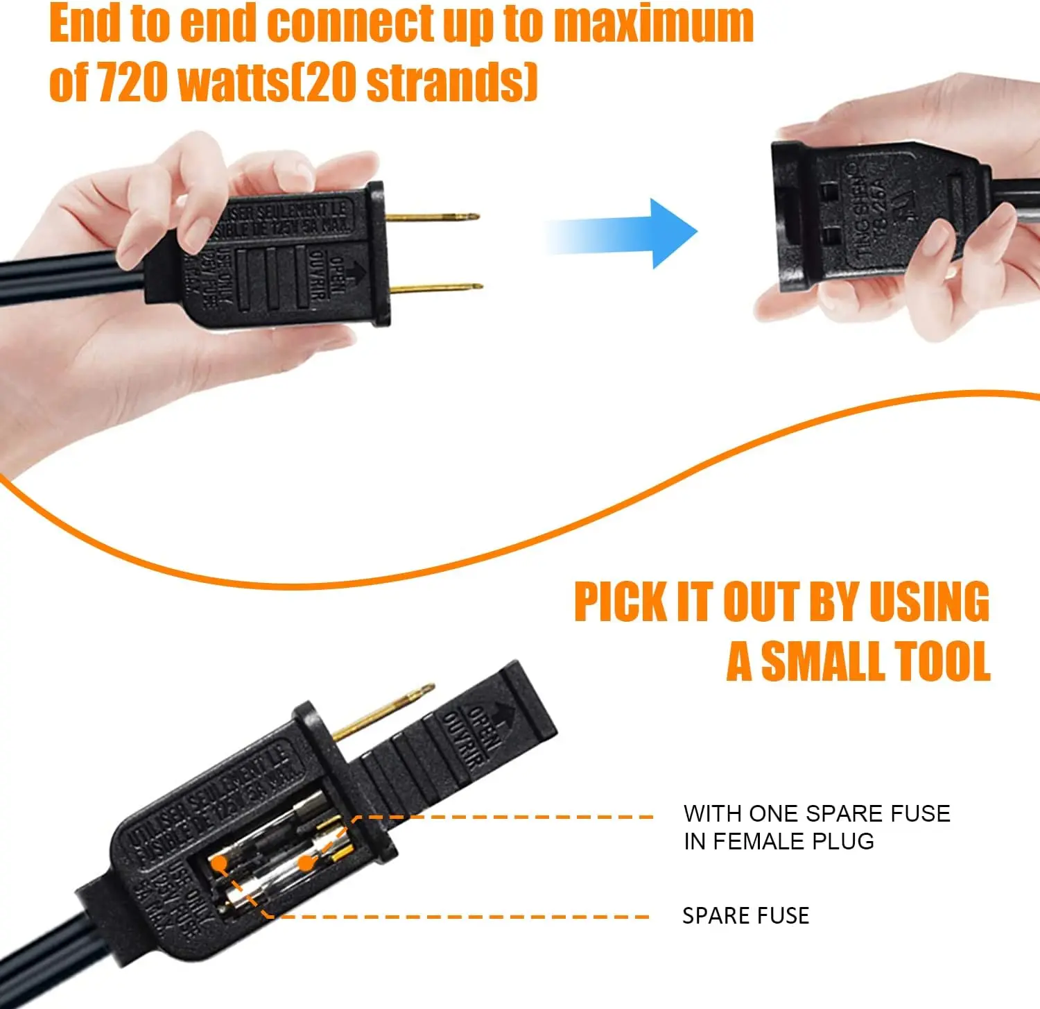The LED string light is very power-saving, its PC bulb is more sturdy than glass bulbs, and it has a longer life than halogen bulbs.
