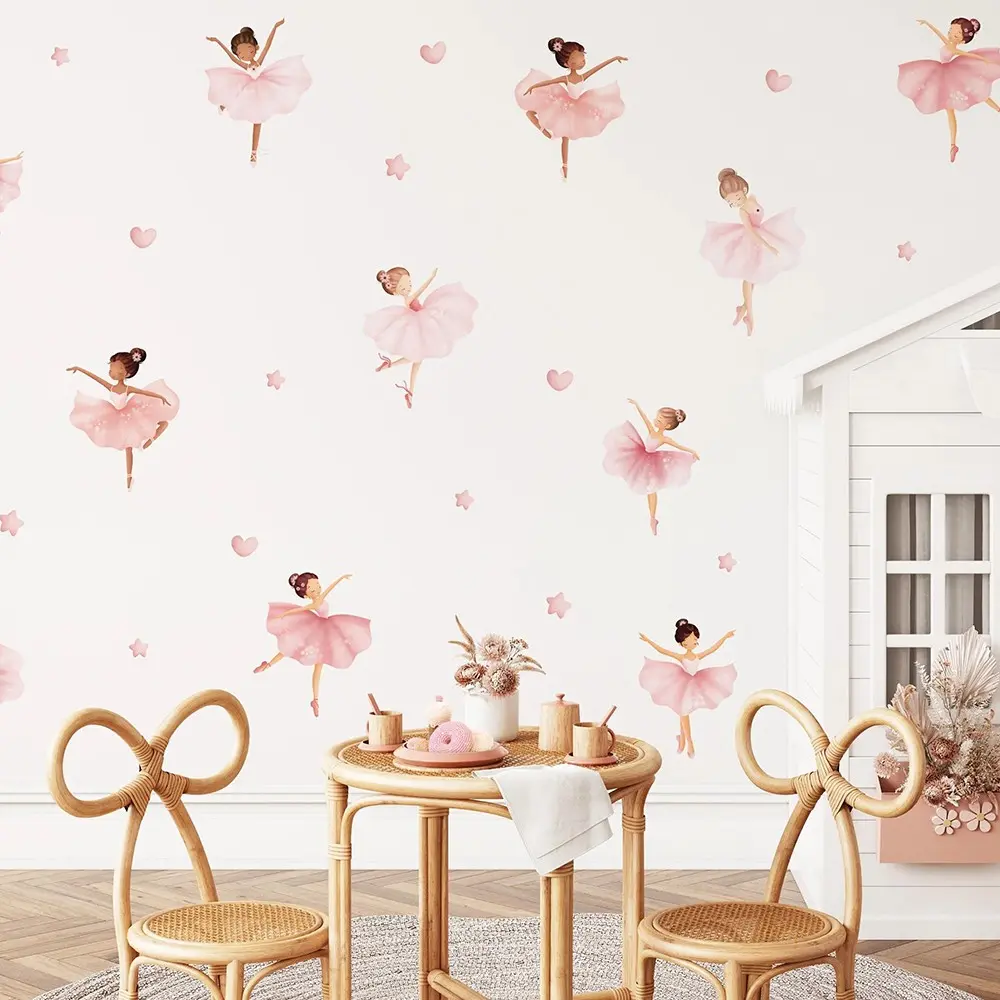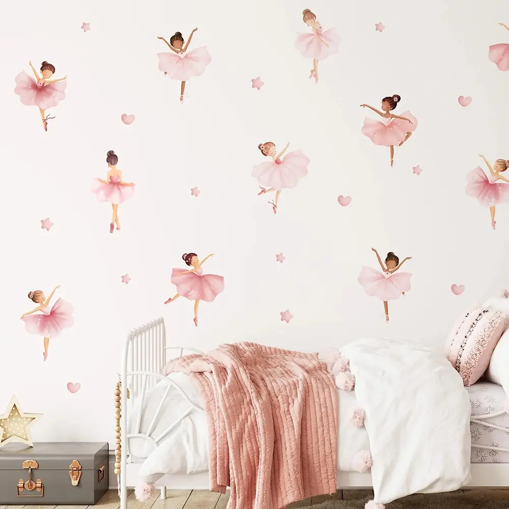 Watercolor Ballerina Fairy Wall Stickers Heart Star Dancer Wall Decals Bedroom Living Room Decor