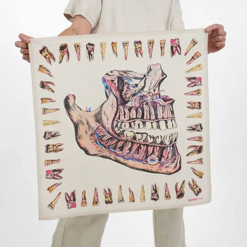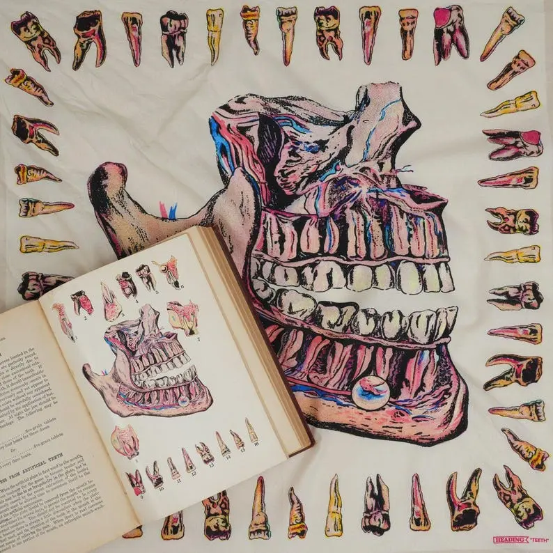 Edgy Teeth Bandana – 22” Cotton Book Inspired Scarf, Gothic Hair Bandana, Neckerchief, Book Lover Gift