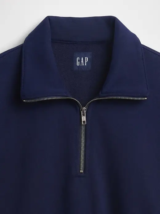Gap Adult Heavyweight Oversized Quarter-Zip Pullover Comfy Fleece Long Sleeves Banded Cuffs Drawcord Hood Kanga Pockets Menswear