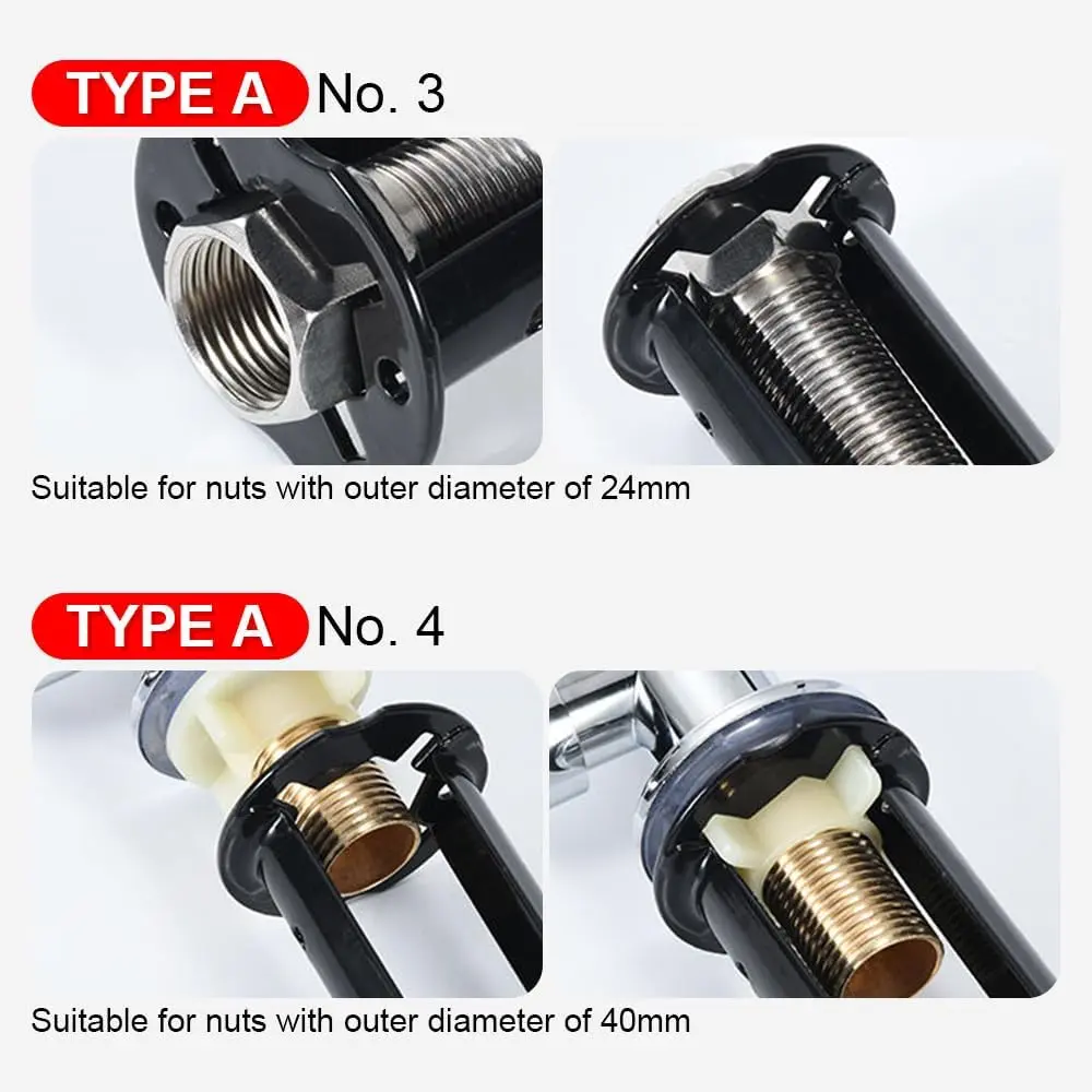 · I need to work on various sizes of pipes and nuts.Is this wrench universal?Do I need to buy other kits? No need for additional tools.This is an all-in-one multifunctional wrench, featuring 7 standard buckles and a four-jaw hex design.It fits most common household sizes, from smaller faucet nuts to larger pipe fittings.