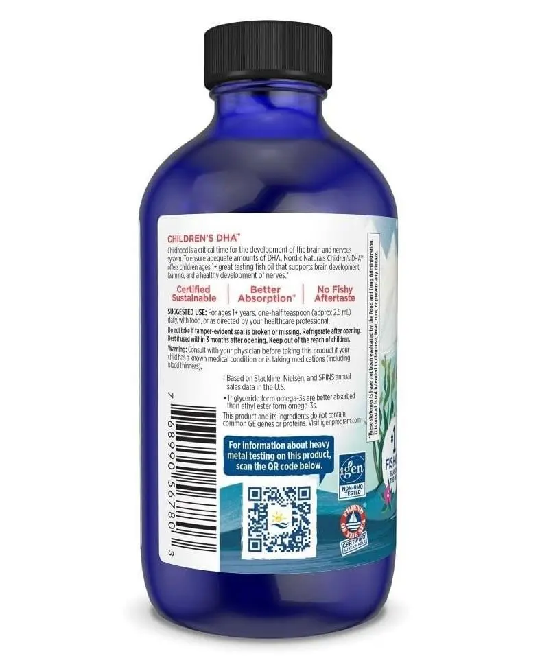 ·SAFE & RELIABLE - This liquid fish oil is made from 100% wild Arctic cod. Purified fish oil is the safest and most reliable source of omega-3 DHA, and it's estimated that only 1% of kids get fish oil regularly.