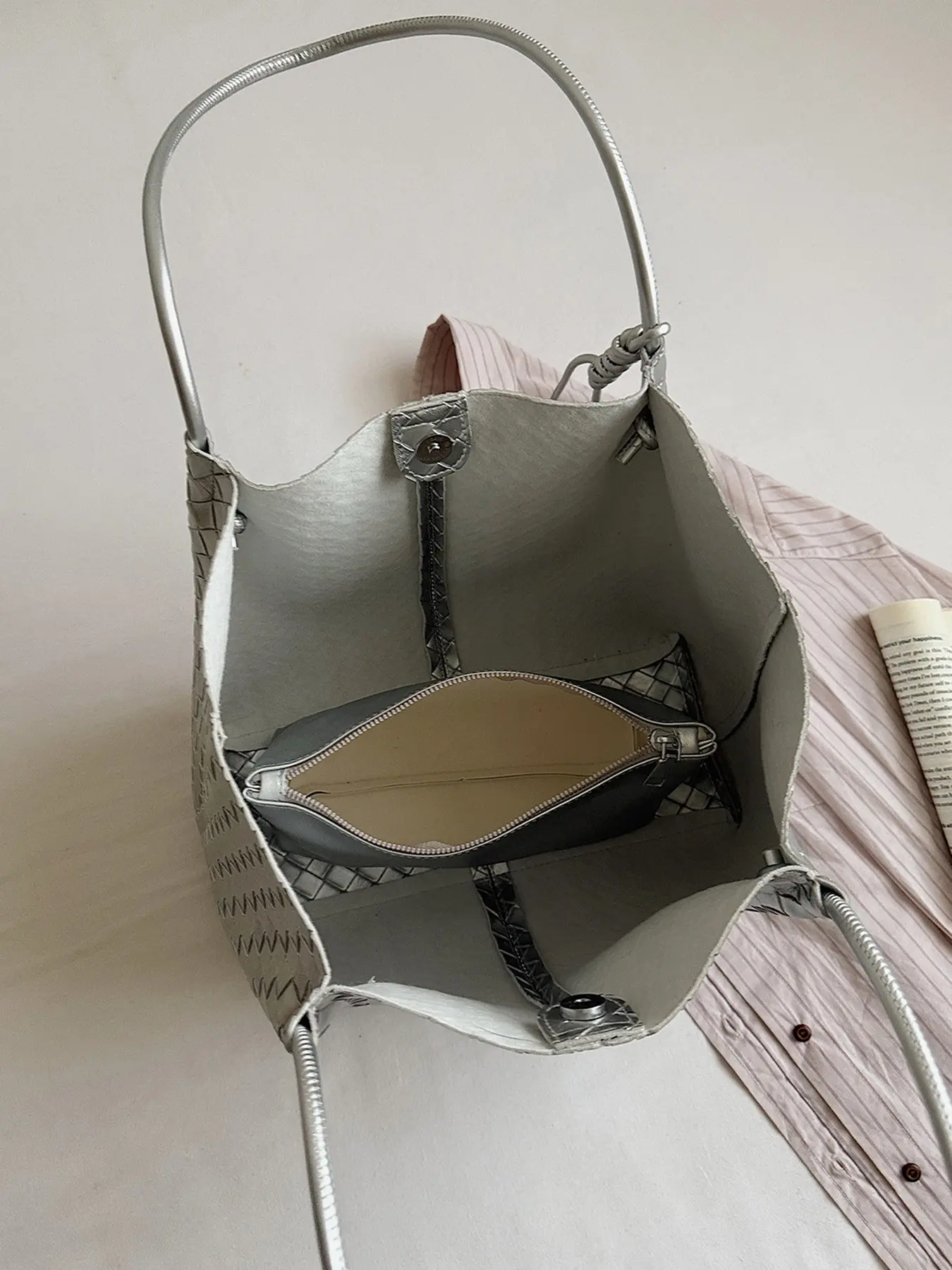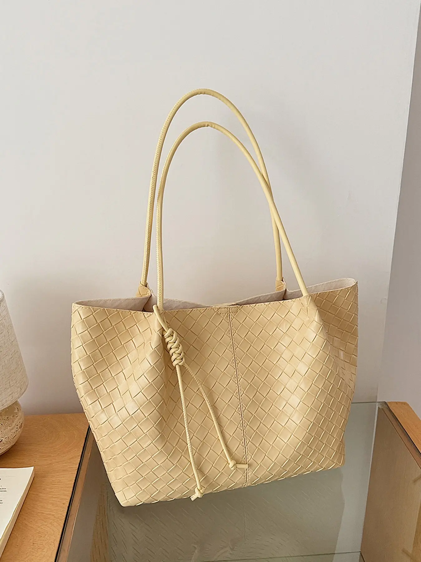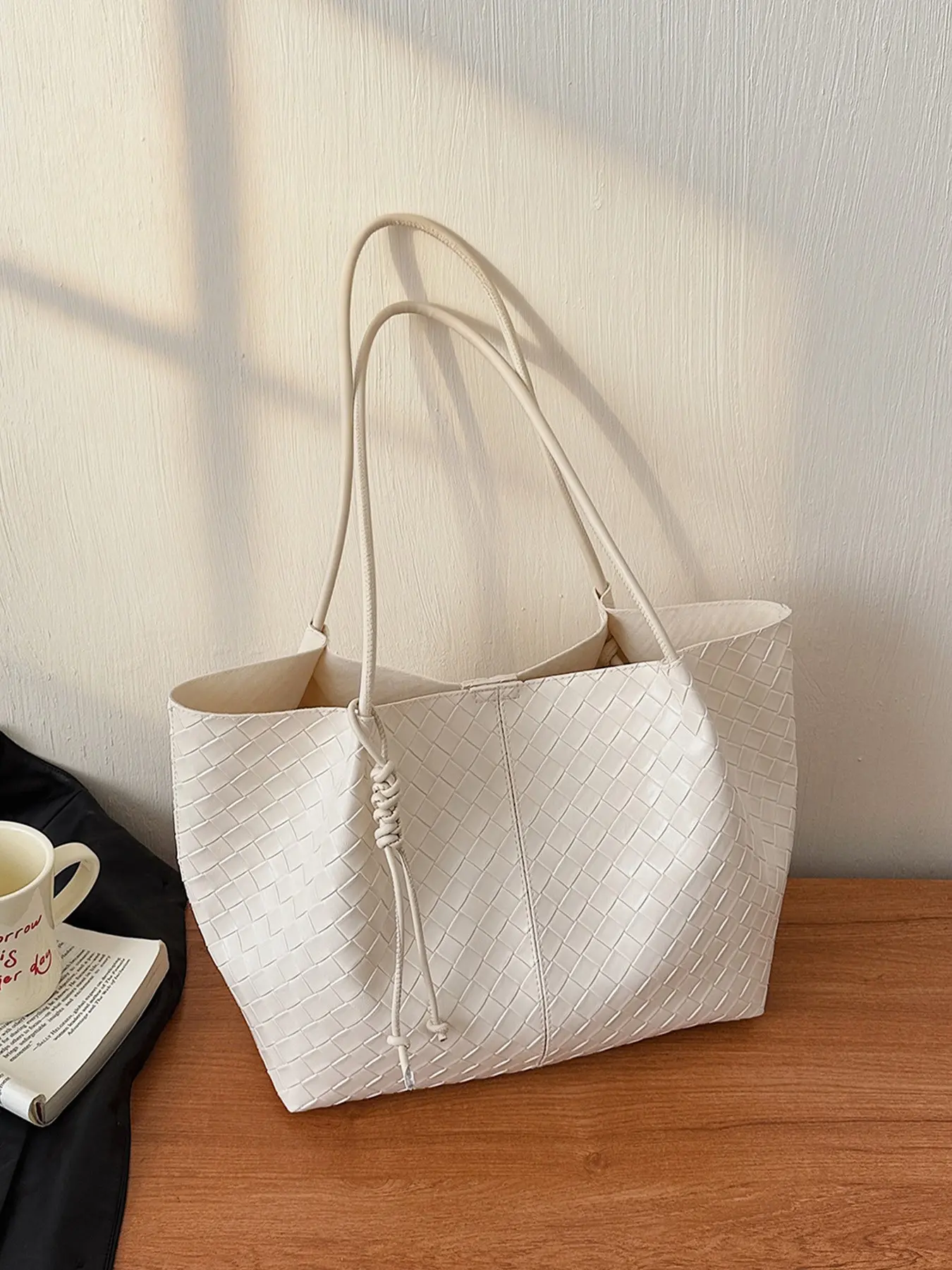 1pc Knitted pattern tote bag for women, large capacity diamond patterned shoulder bag, included with lazy and relaxed shopping bag, essential for women's commuting armpit bag