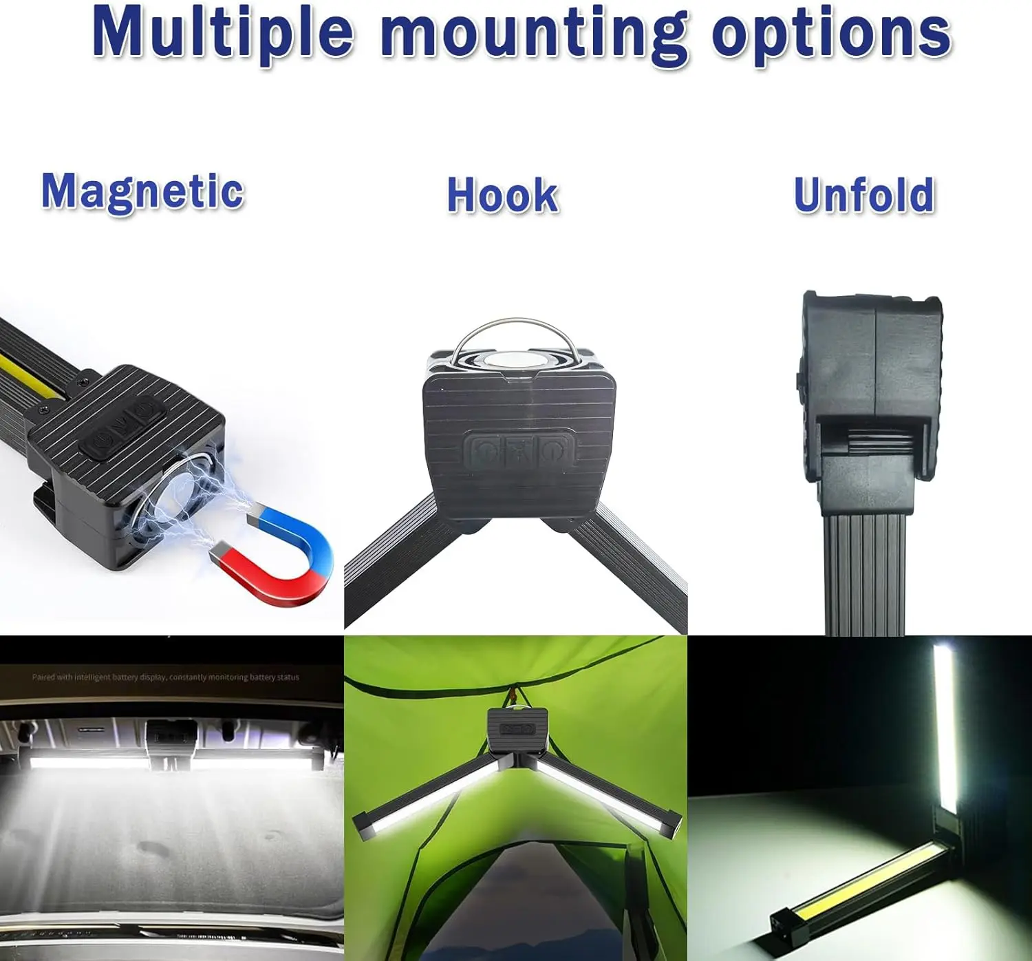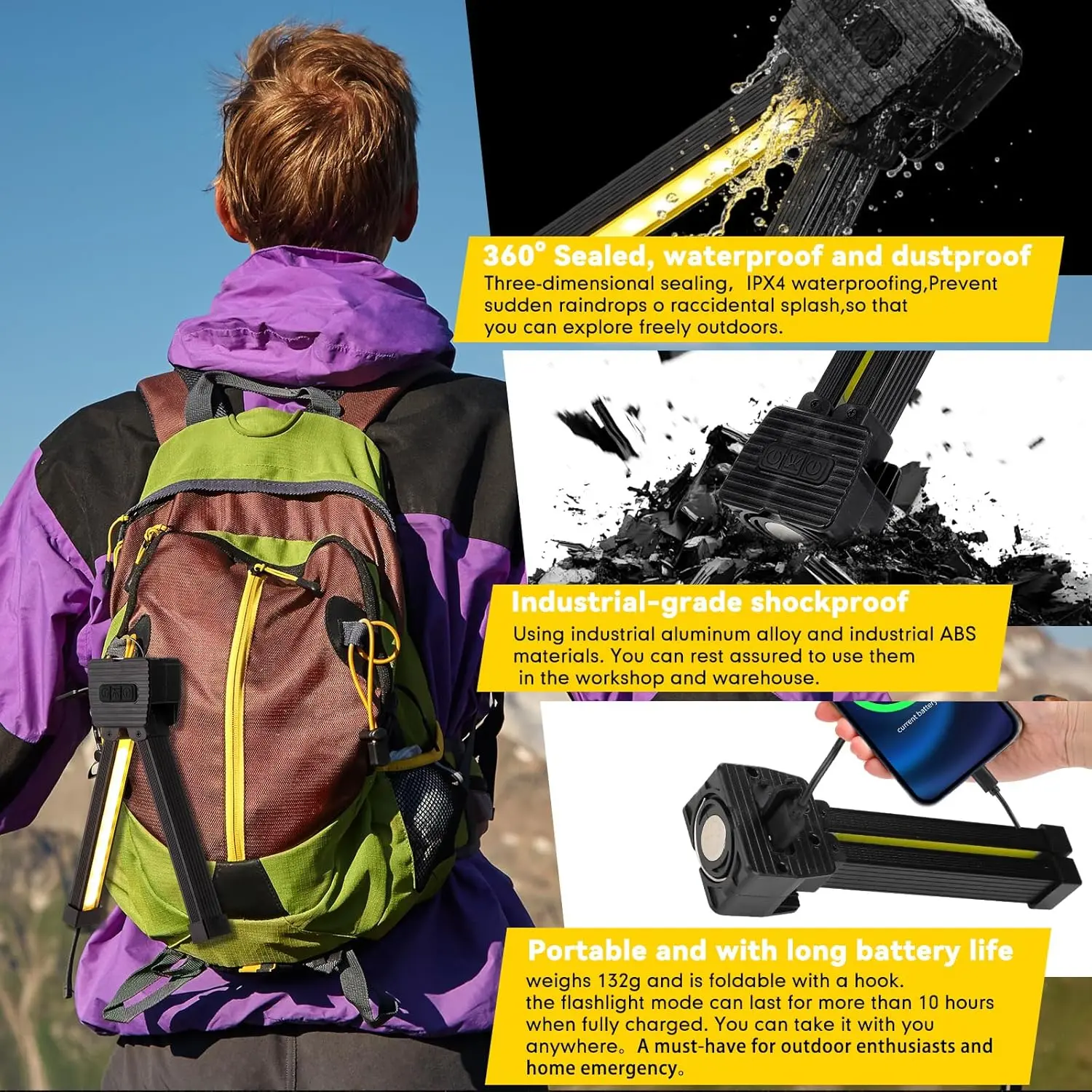 ·Dual Charging & Power Bank Function: Tent lights for camping equipped with a USB output port, this rechargeable work light also functions as a power bank, allowing you to charge your phone or other devices on the go