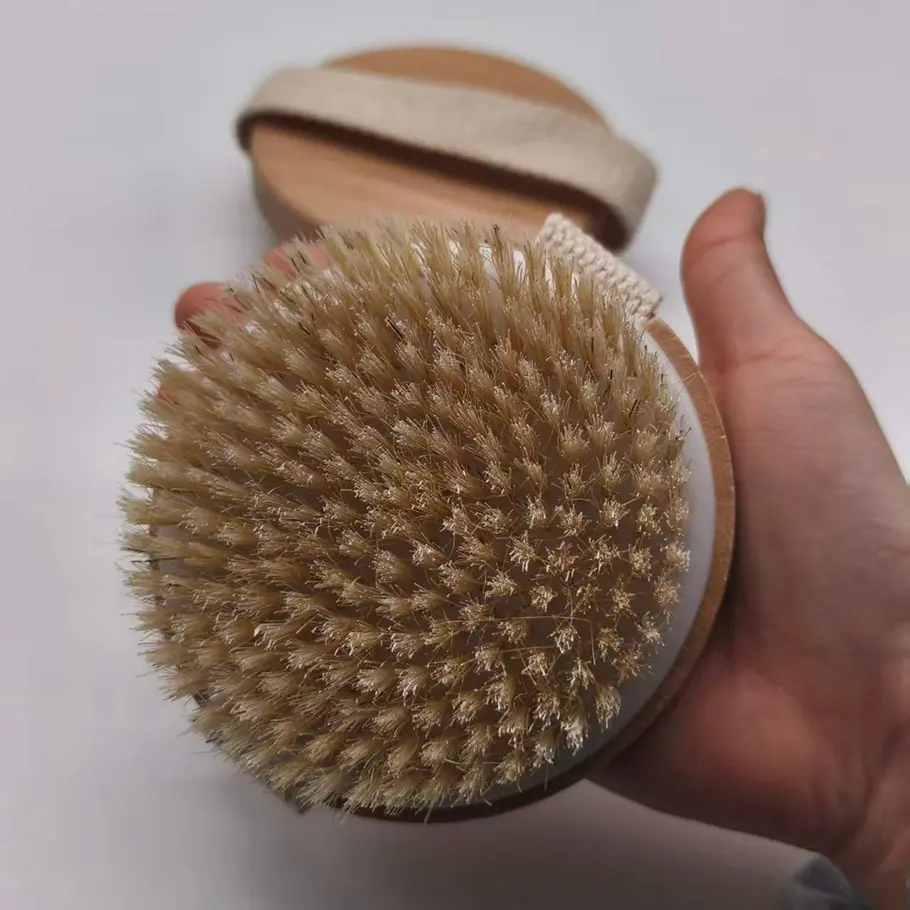 Solid Wood Pig Bristle Bath Brush, Body Dry Brush, Skin Cleaning Brush, Massage Fat Brush, Exfoliating Bath Brush, Natural Hair Brush