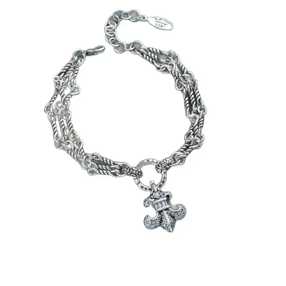2026 New Arrival Cross & Zircon Marquise Bracelet for Women | Western Dark Aesthetic Jewelry, Versatile Stackable Layering Bracelet