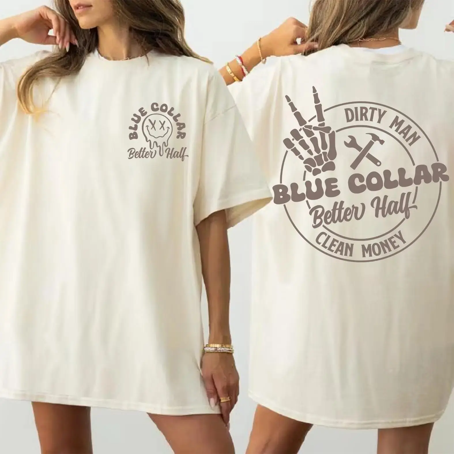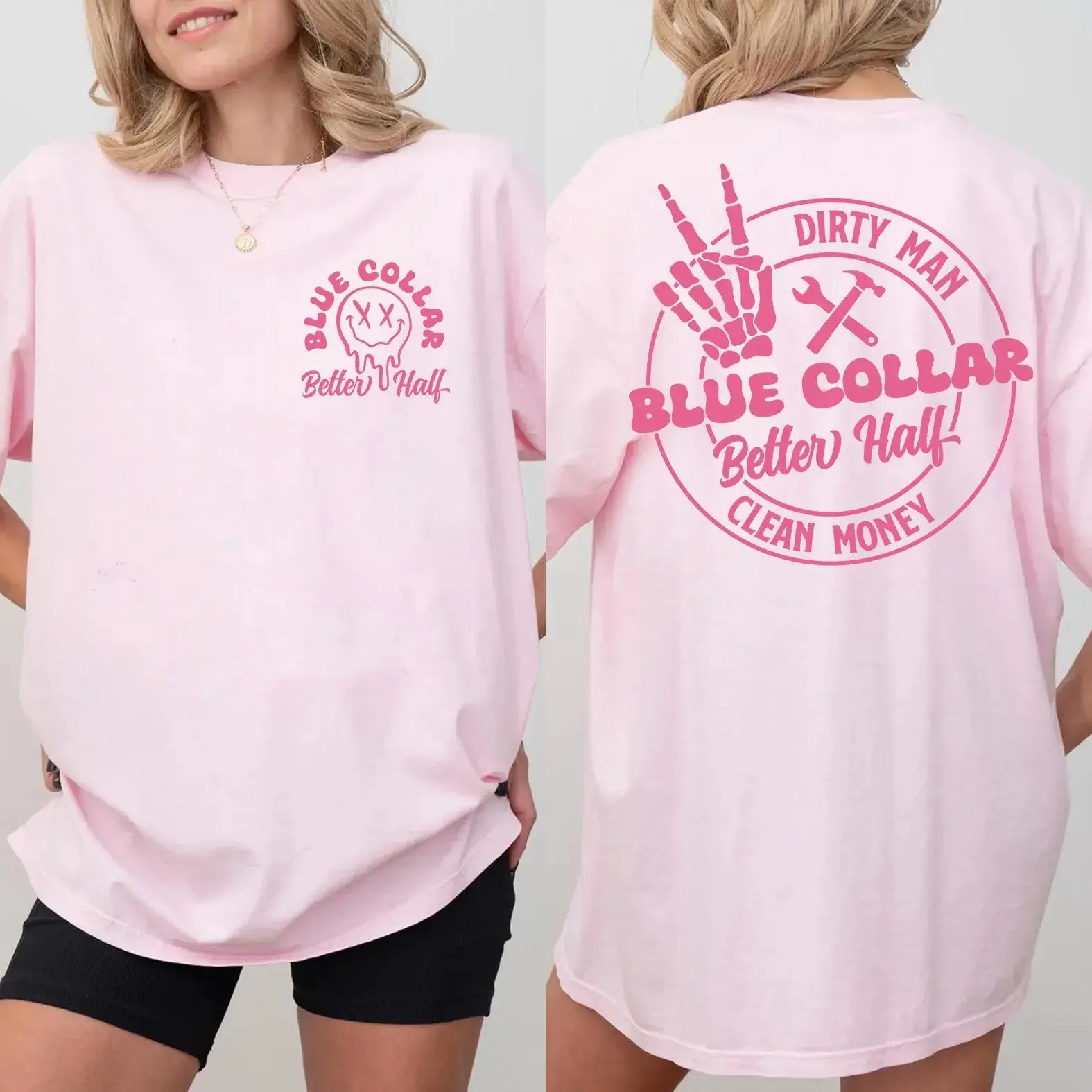 Comfort Colors Blue Collar Better Half T-Shirt – Trendy Streetwear Top For Womenswear Summer