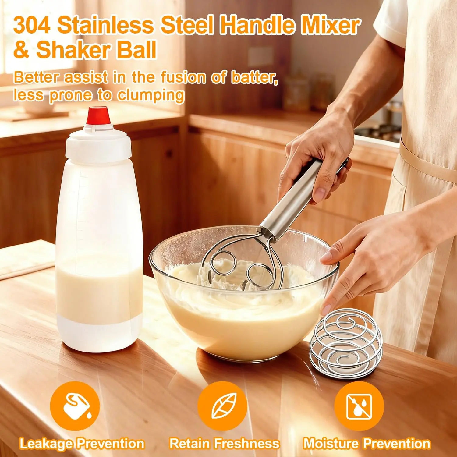 Surprise your loved ones with this Pancake Batter Dispenser. With a 1000ml Pancake Mix Bottle, it's a thoughtful Housewarming Gift for joyful mornings together. The wide mouth and smooth spout let you draw shapes, hearts, or patterns—turning every meal into a creative Kitchen Gadget experience. Perfect for festive mornings and family gatherings.