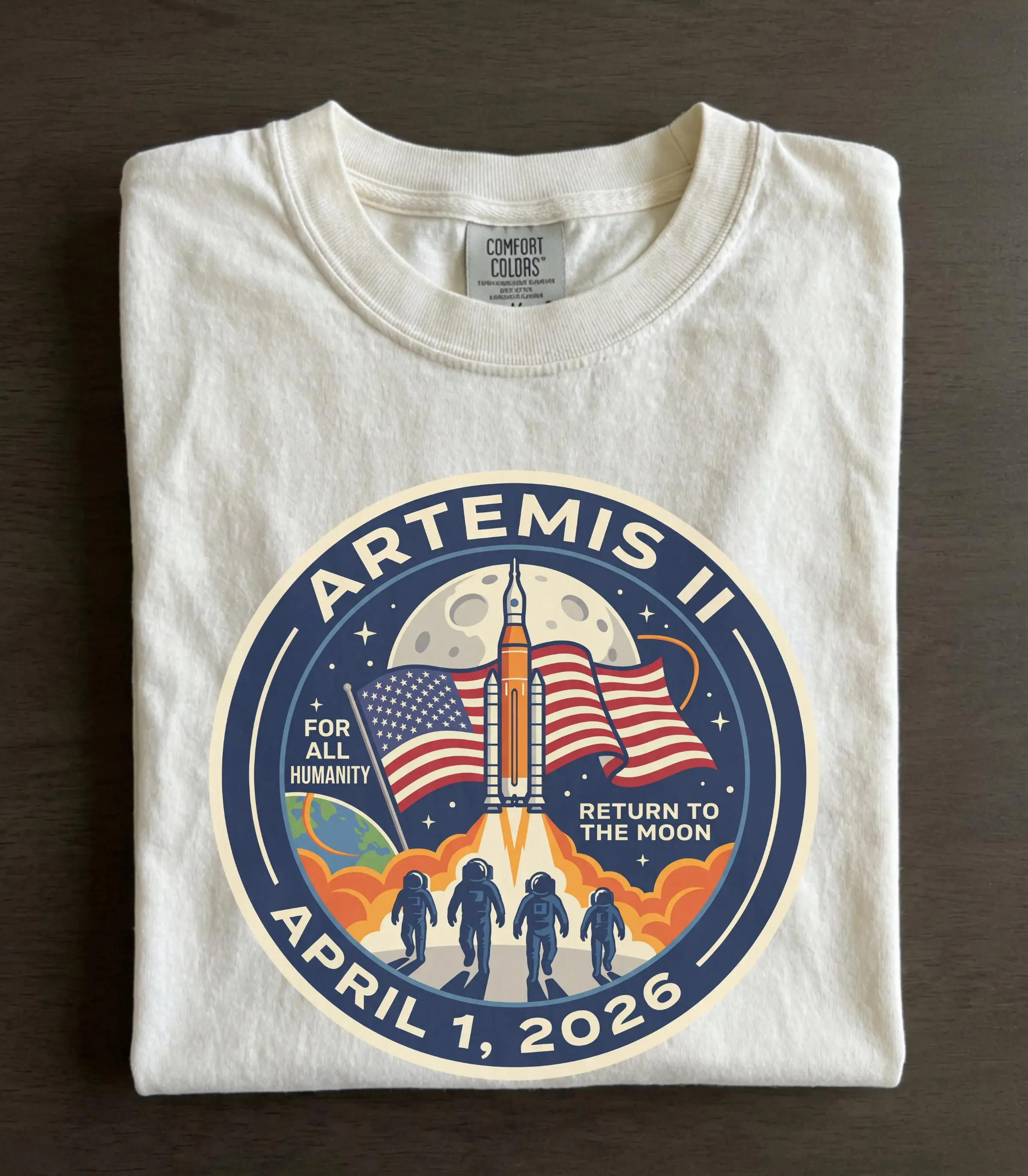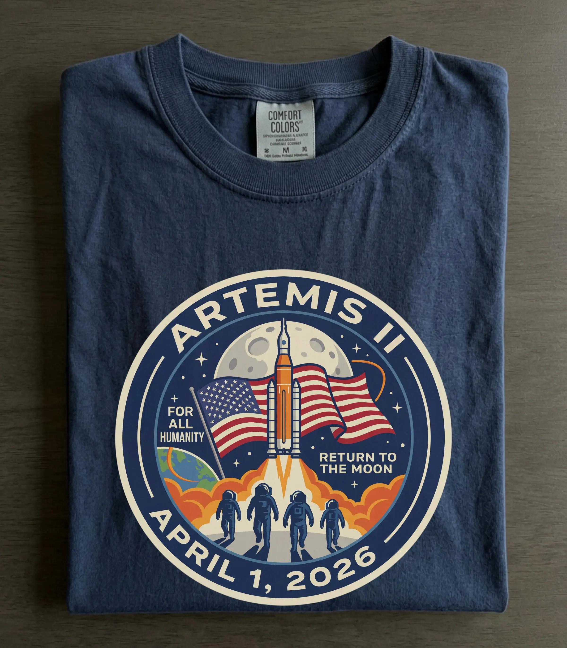 Artemis II Mission Shirt, Return to the Moon 2026 Tee, Comfort Colors Retro Astronaut Graphic T-Shirt, Astronomy Lover Gift Unisex T-shirt