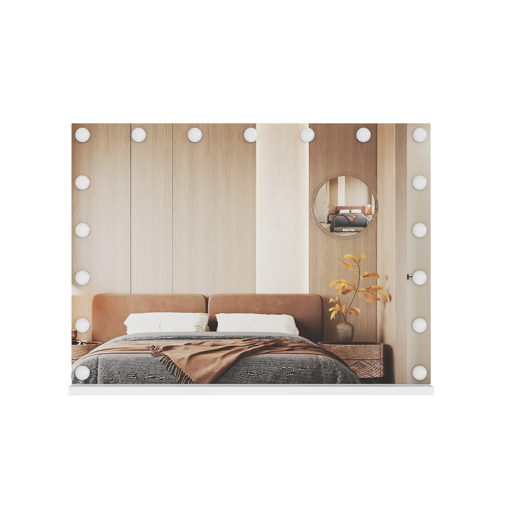 ·3. Versatile Illumination with Three Color Modes: Boasting 15 LED bulbs and three color temperatures ranging from cool white to warm yellow (3000-6000K), this mirror provides customizable illumination to suit your makeup needs. Easily adjust the brightness and switch between Soft White, Neutral White, and Natural Daylight modes for color-accurate and flawless makeup application under any lighting condition.