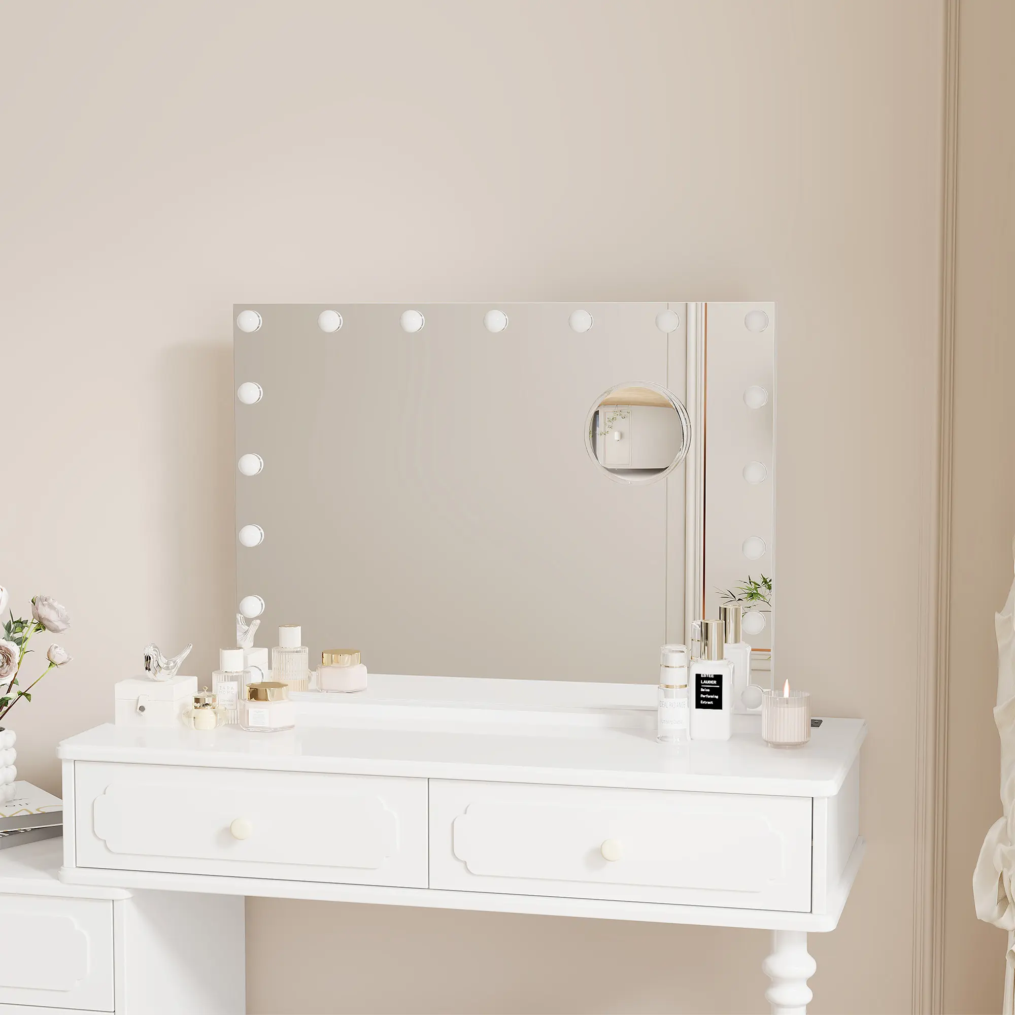 ·4. Detachable 3x Magnifying Glass: The mirror includes a detachable 3x magnifying glass with a suction cup design, ideal for close-up tasks requiring precision. Perfect for intricate makeup applications such as eyeliner, eyebrows, lipstick, and concealer, this magnifying glass ensures every detail of your makeup is perfected to professional standards, enhancing your overall look.