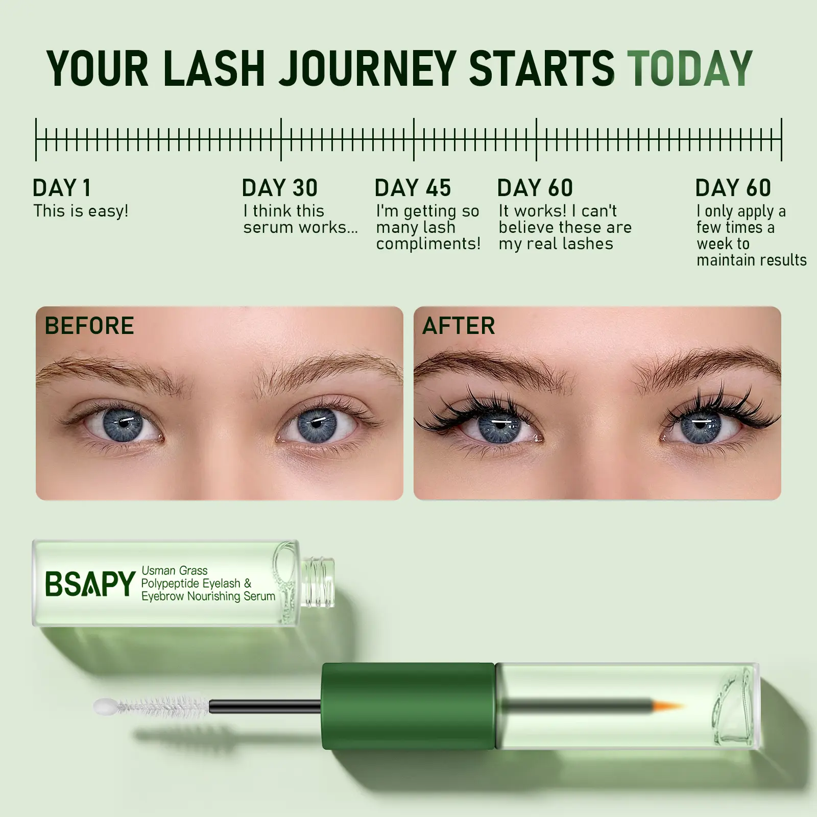· Achieve visibly longer, thicker & fuller looking eyelashes and eyebrows with BSAPY Usman Grass & Peptide Lash & Brow Enhancing Serum. Infused with Acetyl Tetrapeptide-3, our advanced peptide complex activates hair follicles, extends the growth cycle, and boosts lash & brow density naturally for a fuller, healthier