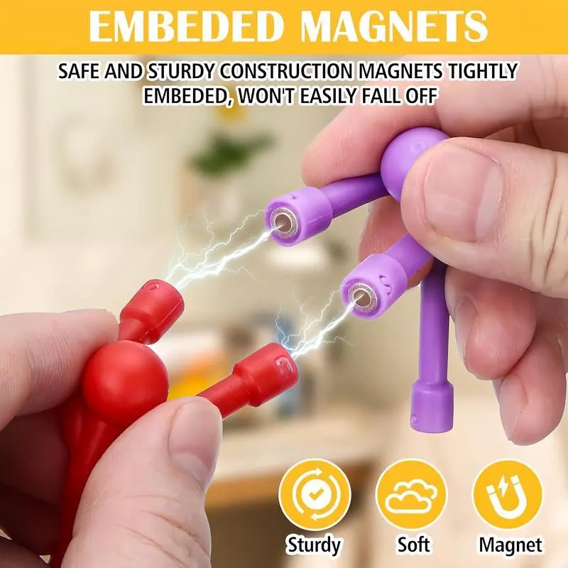 CREATIVE STRESS RELIEF The rubber magnet man can be bent and freely combined into creative shapes to stimulate children's creativity. It is a stress relief tool for adults and the whole family can share the interactive fun.