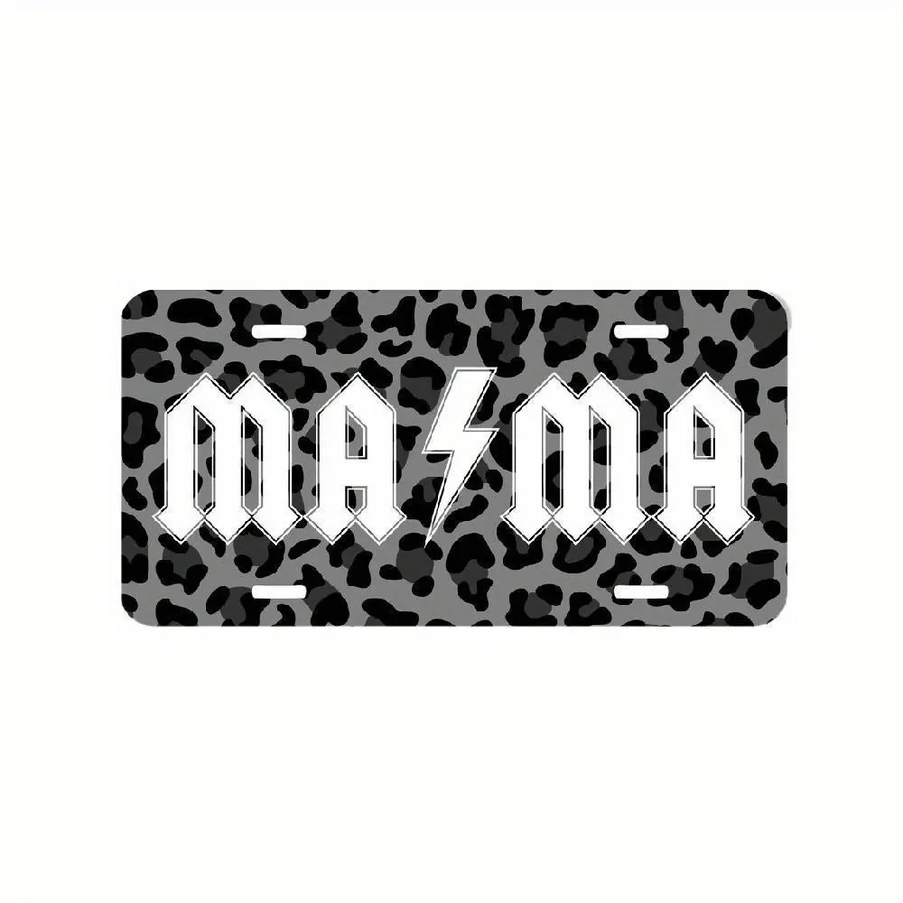Rock on with attitude! This Heavy Metal Mama Leopard Print Novelty License Plate features bold white gothic-style lettering "MA/MA" with a lightning bolt, set against a fierce black and gray leopard print background. Perfect for badass moms, rock lovers, metalheads, or anyone who lives life loud and proud.