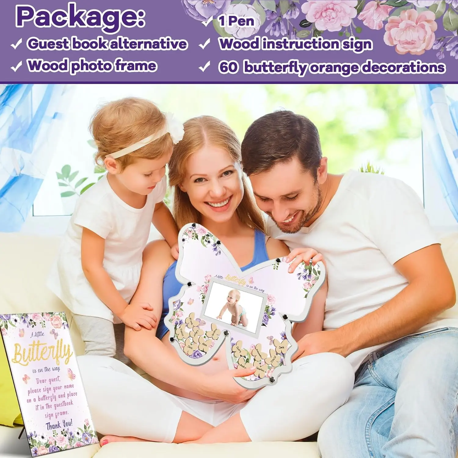 ·Large size & multiple quantity - The purple Baby Shower Guest Book Alternative includes 64 pieces, including 1 butterfly baby shower guest book alternative, about 30cm/12inch. 1 photo frame, they are also suitable for photos measuring 10.5cm*6.8cm/4.1inch*2.7inch. 60 butterfly signs, measure 3cm / 1.18 inches. 1 instructions wooden sign, making it easy to read and follow, about 13*20cm / 5*8 inches and 1 pen. This set is sure to meet all of your baby shower party decorations and daily needs.