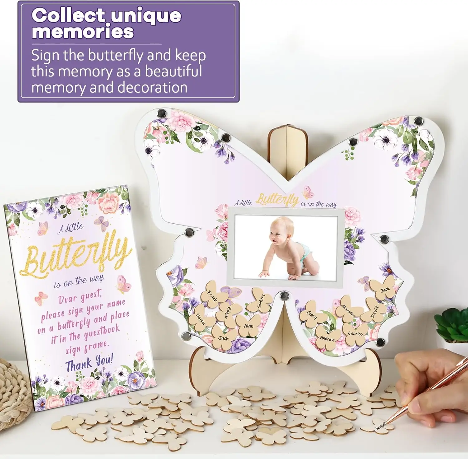 ·Novelty design - An anti-scratch film on the surface needs to be torn off, and the entire product will be completely new. Our guest book alternative is designed in a delicate butterfly shape, with the beautiful pattern, a little butterfly is on the way to create a lovely and impressive display. This Baby Shower Favor serves as a decoration for your baby's birthday celebration and can be preserved as a pregnancy keepsake to display in your home, preserving nice memories for years to come.