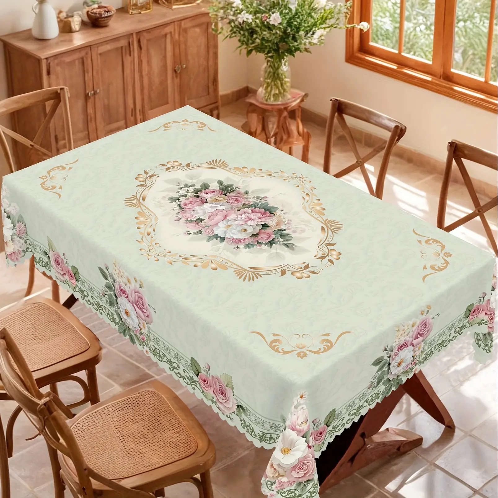 1 PC Floral Tablecloth Rectangular Tablecloth, Bird Tablecloth Round Tablecloth, Spring Tablecloth Floral Tablecloth, Stain Resistant and Erasable, Waterproof, Decorative Home Kitchen, Restaurant, Party, Holiday, Gift, Indoor, Outdoor